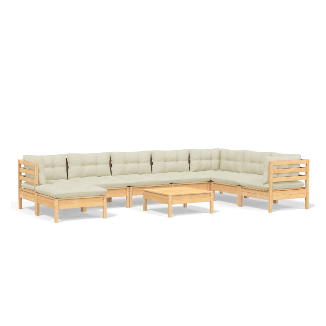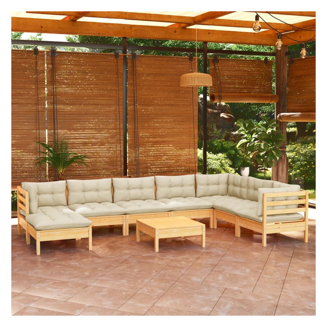 Salon de jardin 9 pcs avec coussins crème bois de pin massif