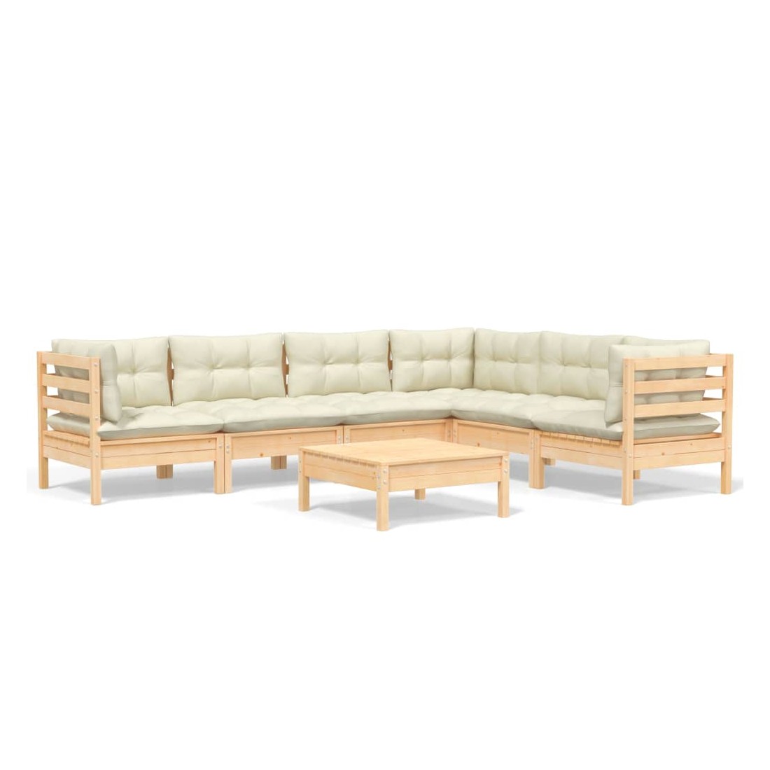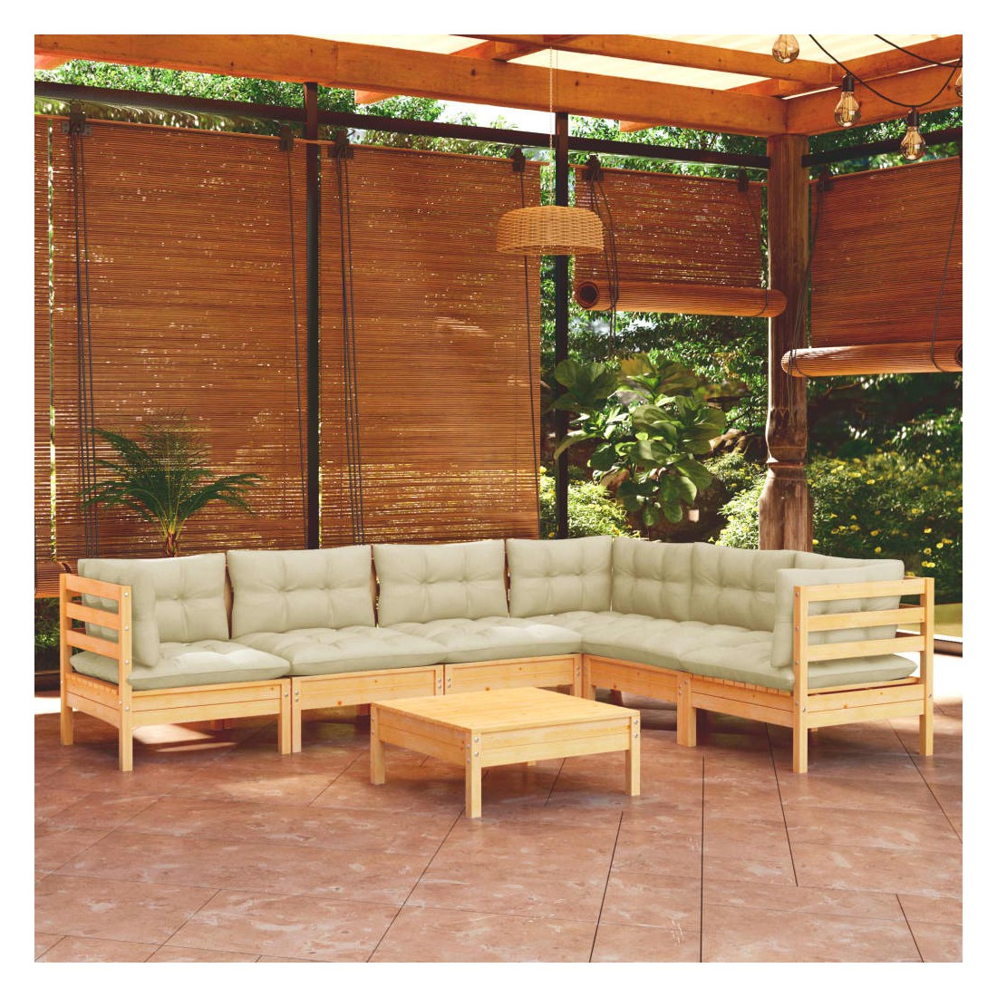 Salon de jardin 7 pcs avec coussins crème bois de pin massif