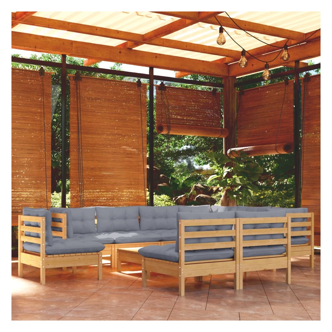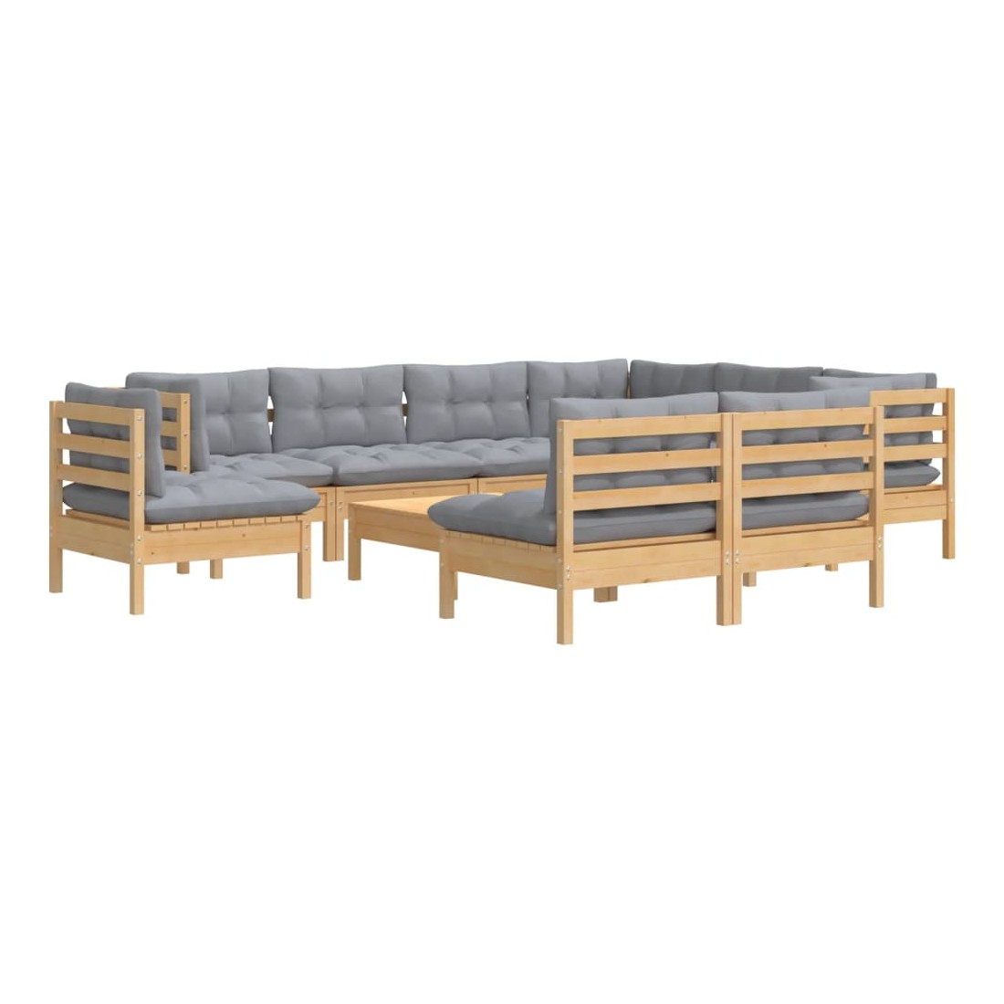 Salon de jardin 10 pcs avec coussins gris bois de pin massif