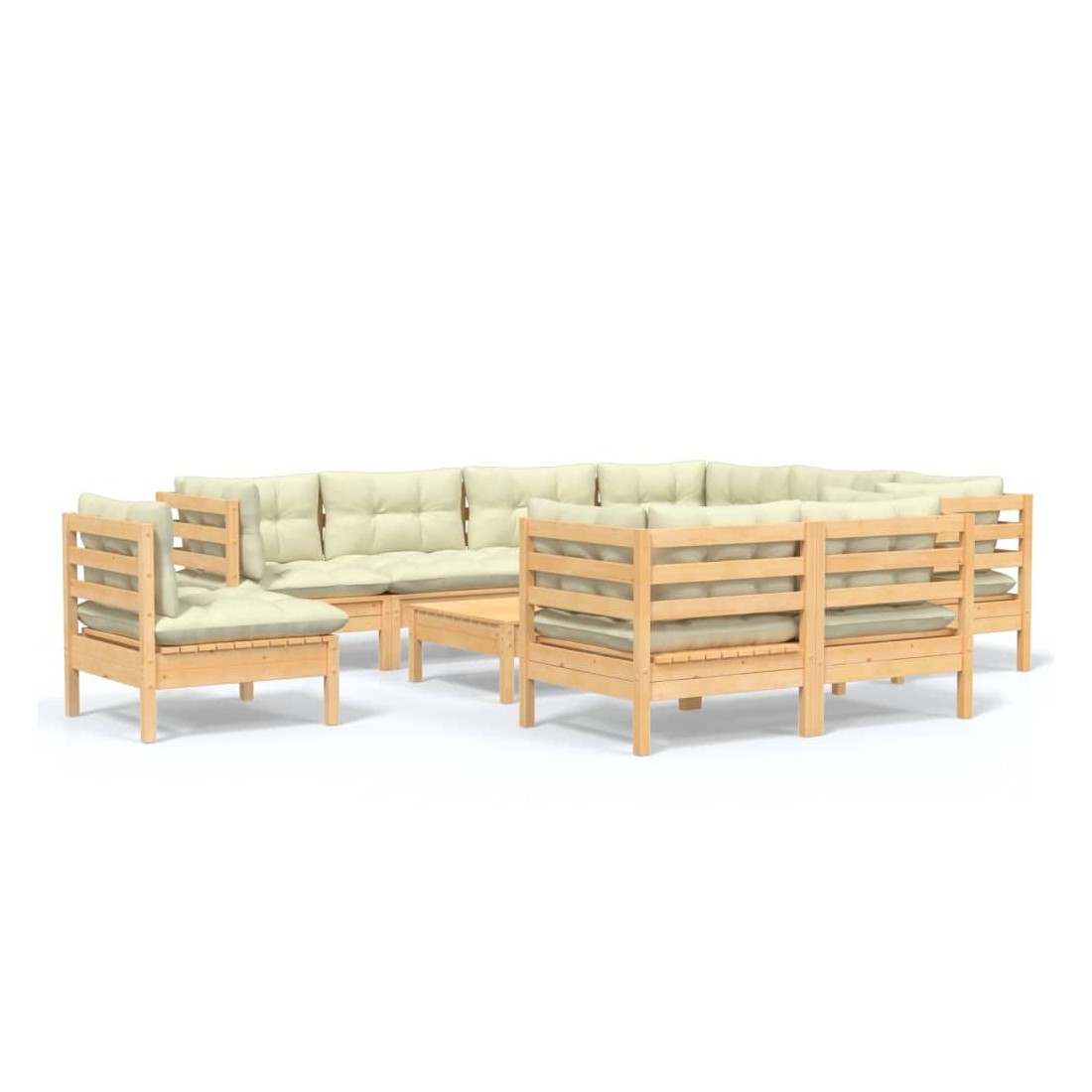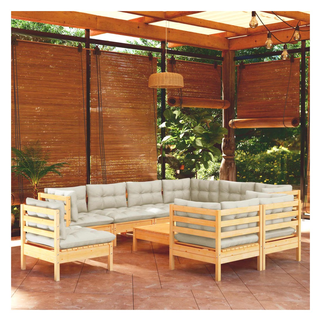 Salon de jardin 10 pcs avec coussins crème bois de pin massif