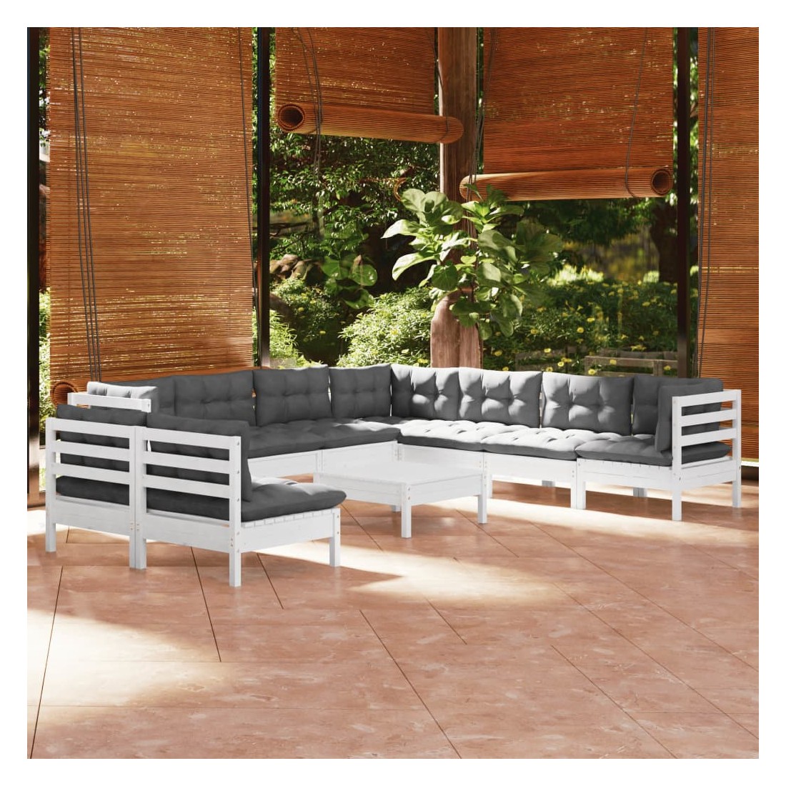 Ce salon de jardin est un excellent choix pour vous détendre et profiter du beau temps, faire une sieste ou discuter avec votre famille ou vos amis. Le salon de patio est fabriqué en bois de pin massif, ce qui le rend robuste et stable. Les coussins ajoutent un confort supplémentaire. Vous pouvez le combiner avec d’autres segments modulaires pour créer vos propres configurations de salon de jardin ! Remarque : afin de prolonger la durée de vie des meubles d'extérieur, nous vous recommandons de les protéger avec une housse imperméable.