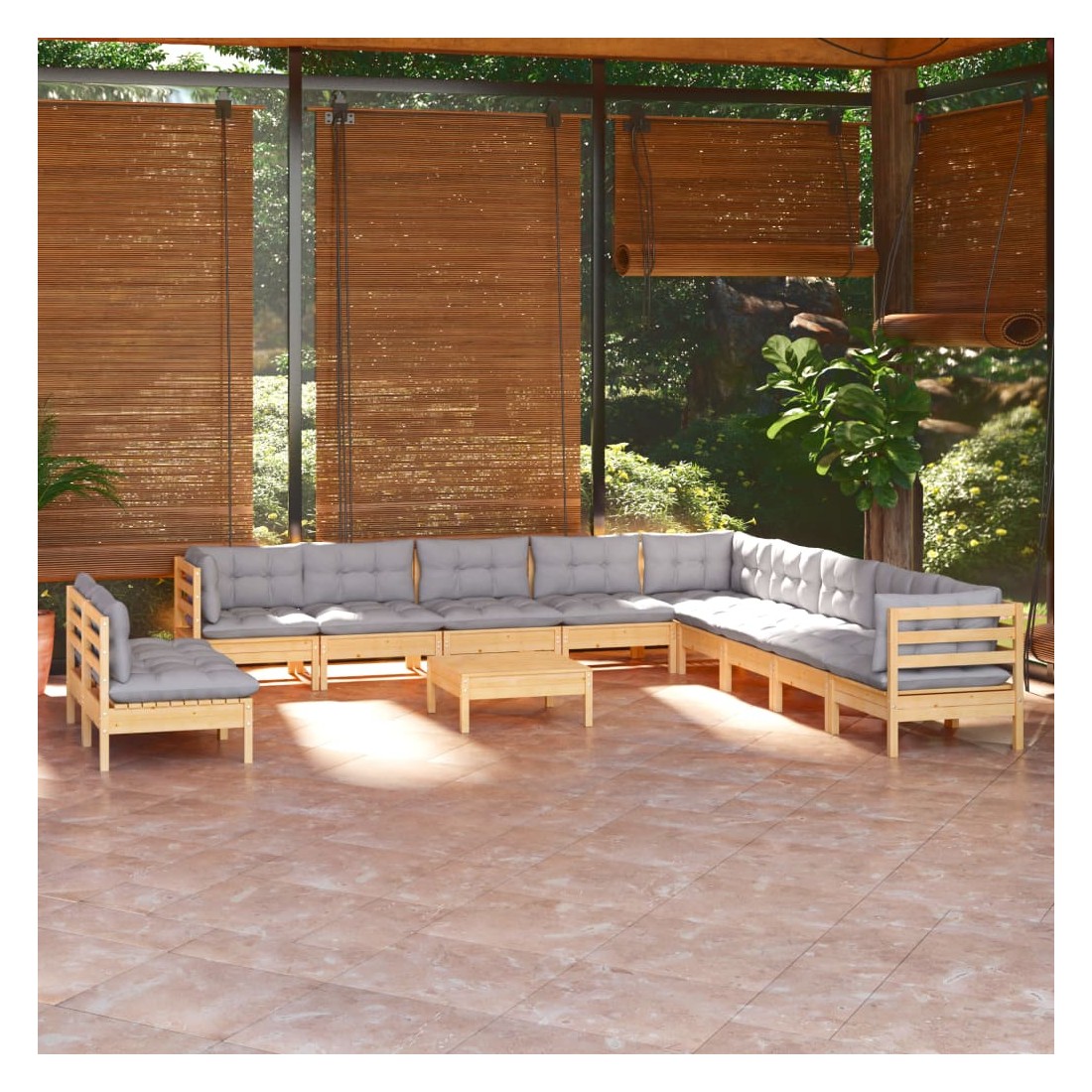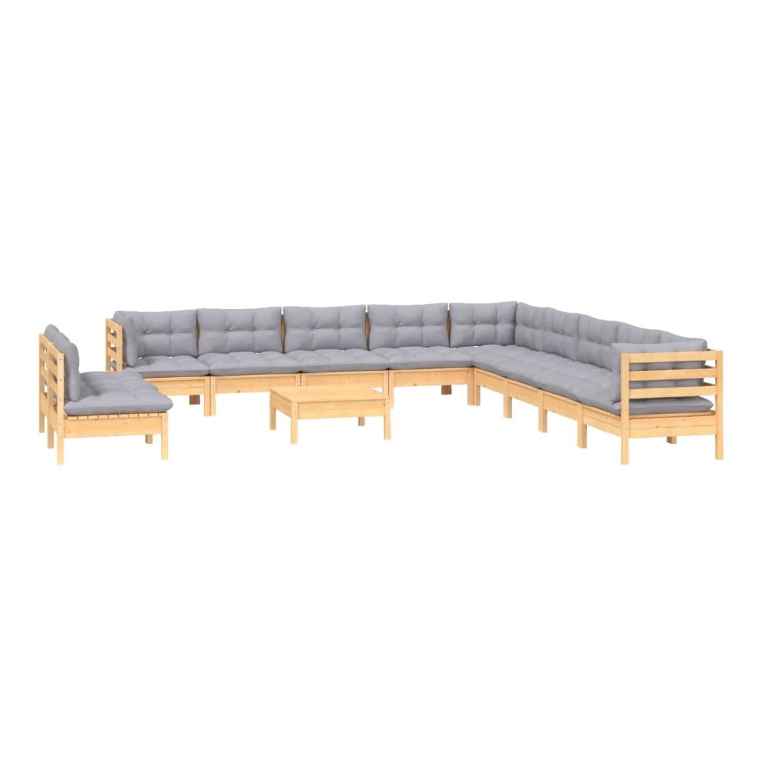 Salon de jardin 12 pcs avec coussins gris Bois de pin massif