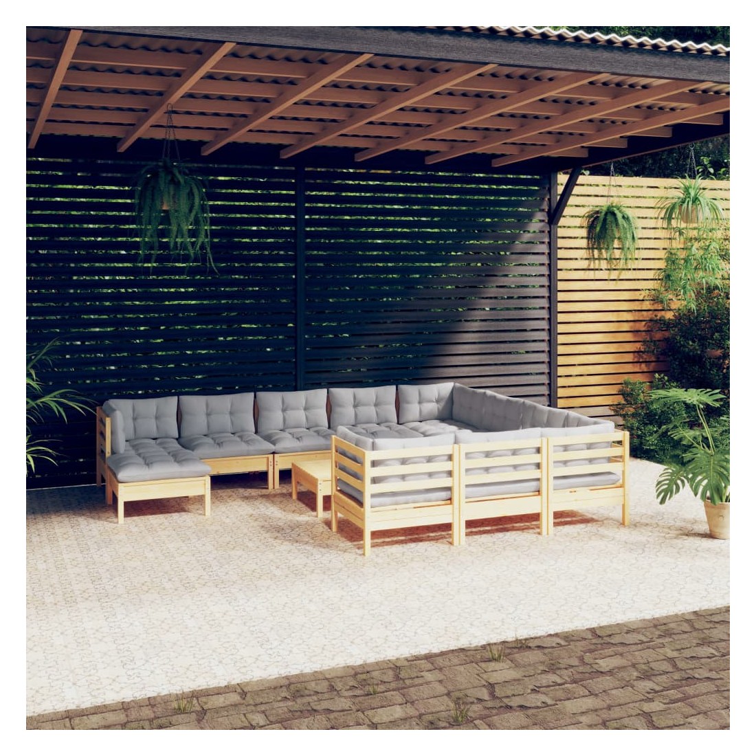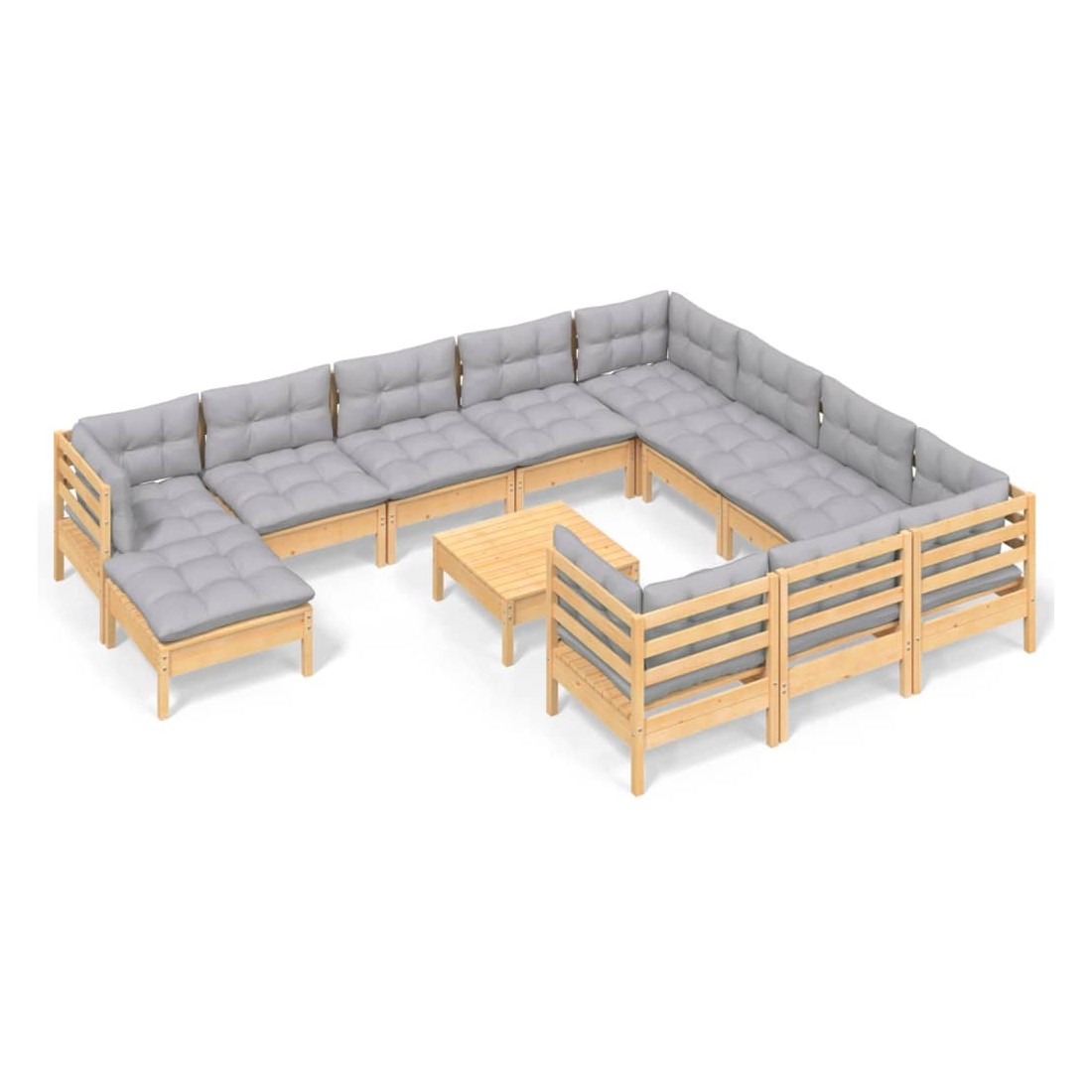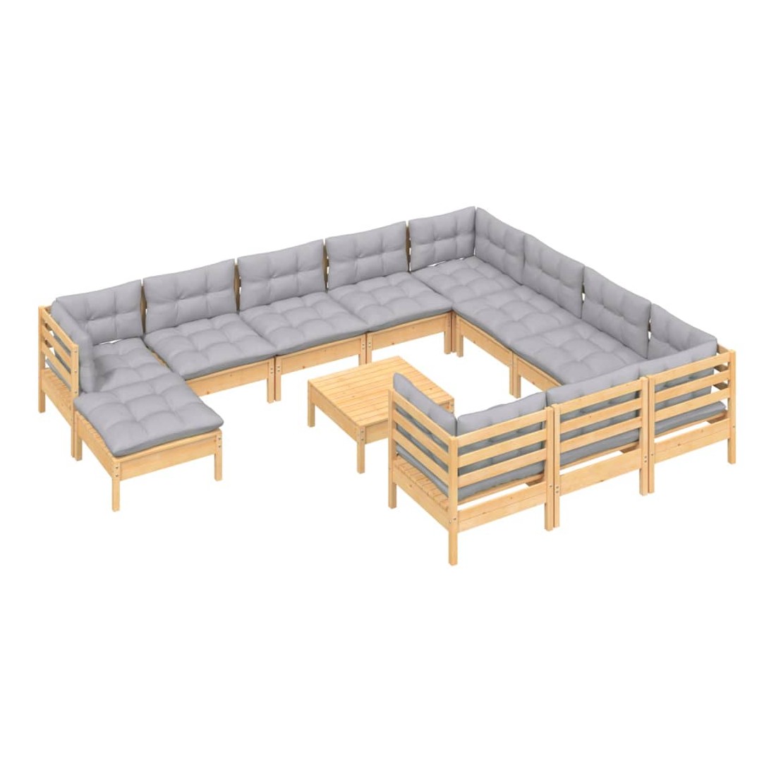 Salon de jardin 12 pcs avec coussins gris Bois de pin