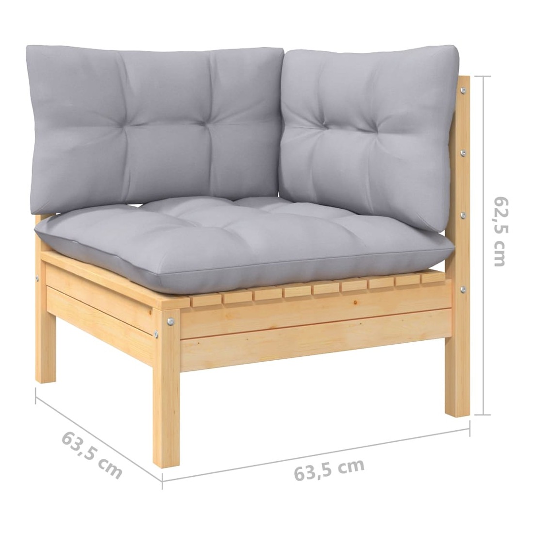 - Dimensions du canapé central/d'angle : 63,5 x 63,5 x 62,5 cm (l x P x H)