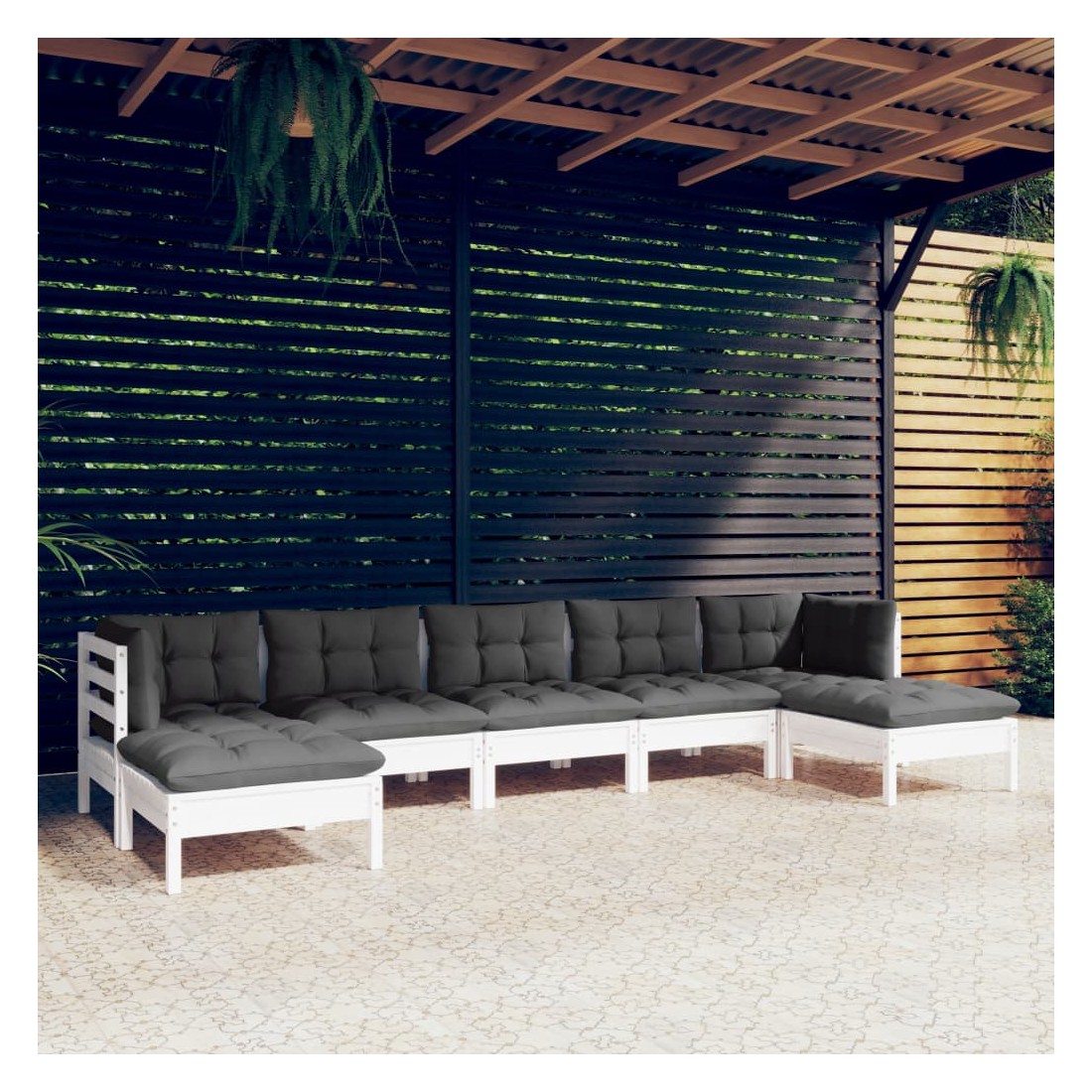 Cet ensemble de salon de jardin en bois est un choix excellent pour vous détendre et profiter du bon temps, faire une sieste ou discuter avec votre famille ou vos amis. Le salon de patio est fabriqué en bois de pin massif, ce qui le rend robuste et stable. Les coussins ajoutent un confort supplémentaire. Vous pouvez le combiner avec d’autres segments modulaires pour créer vos propres configurations de salon de jardin ! Remarque : afin de prolonger la durée de vie des meubles d'extérieur, nous vous recommandons de les protéger avec une housse imperméable.