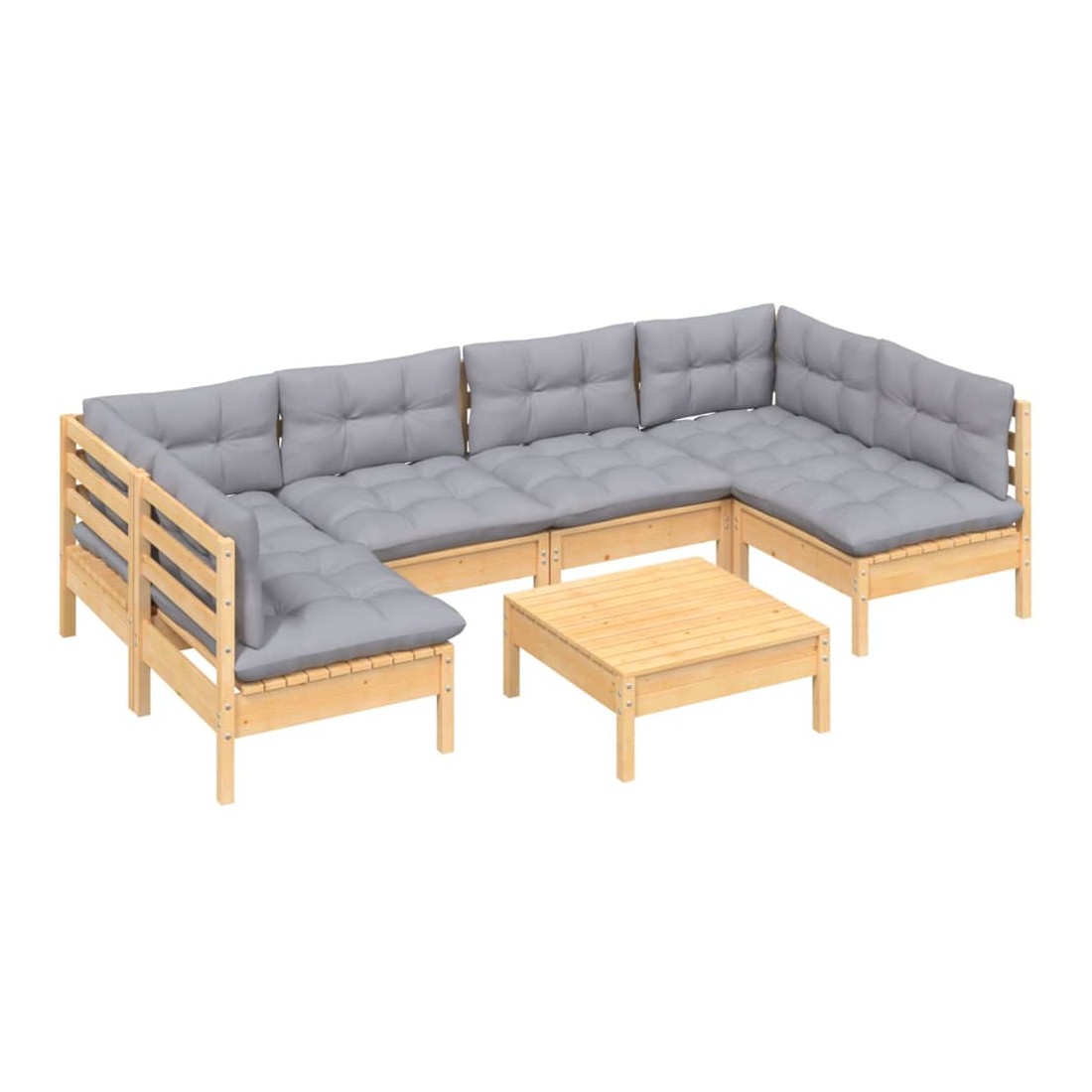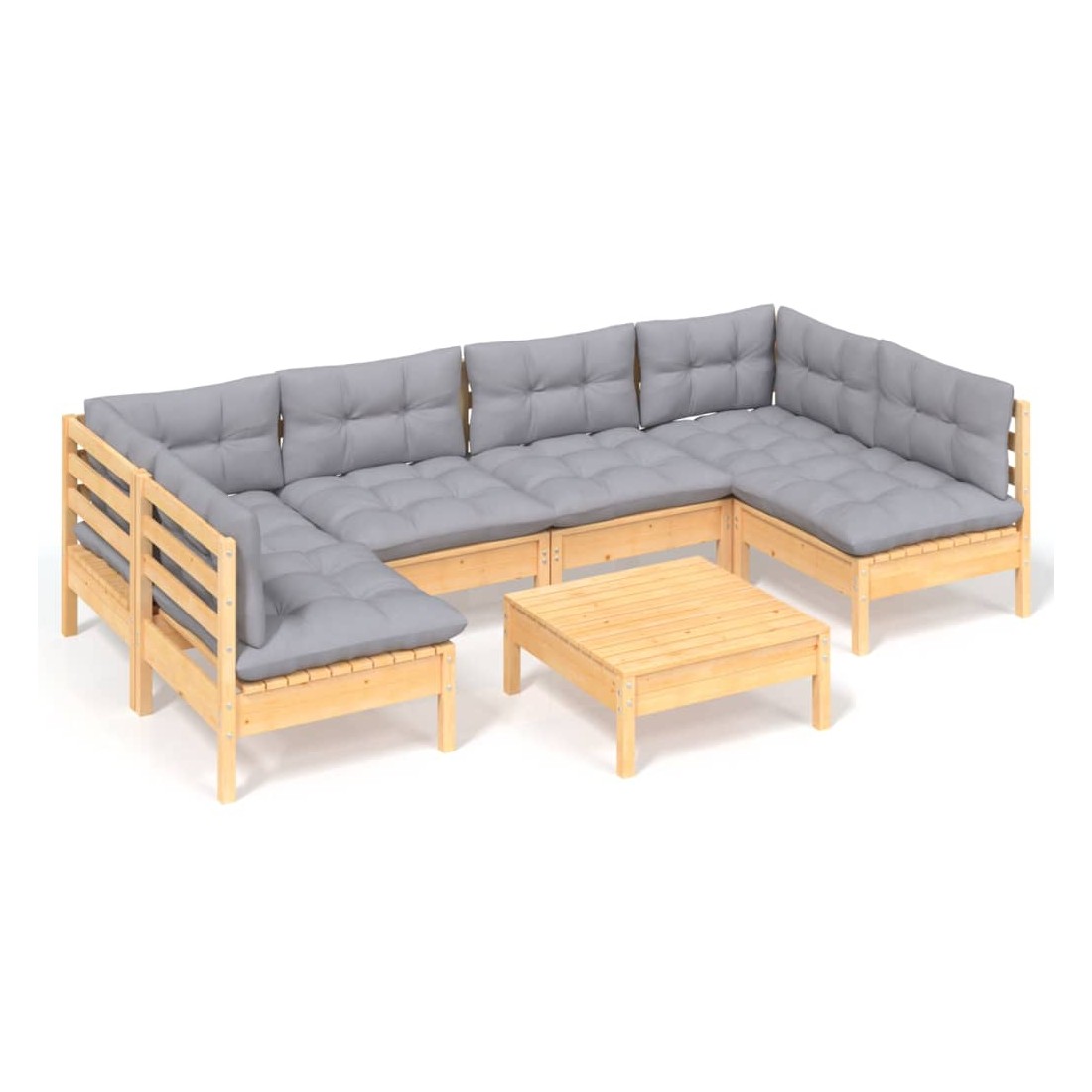 Salon de jardin 7 pcs avec coussins gris bois de pin massif