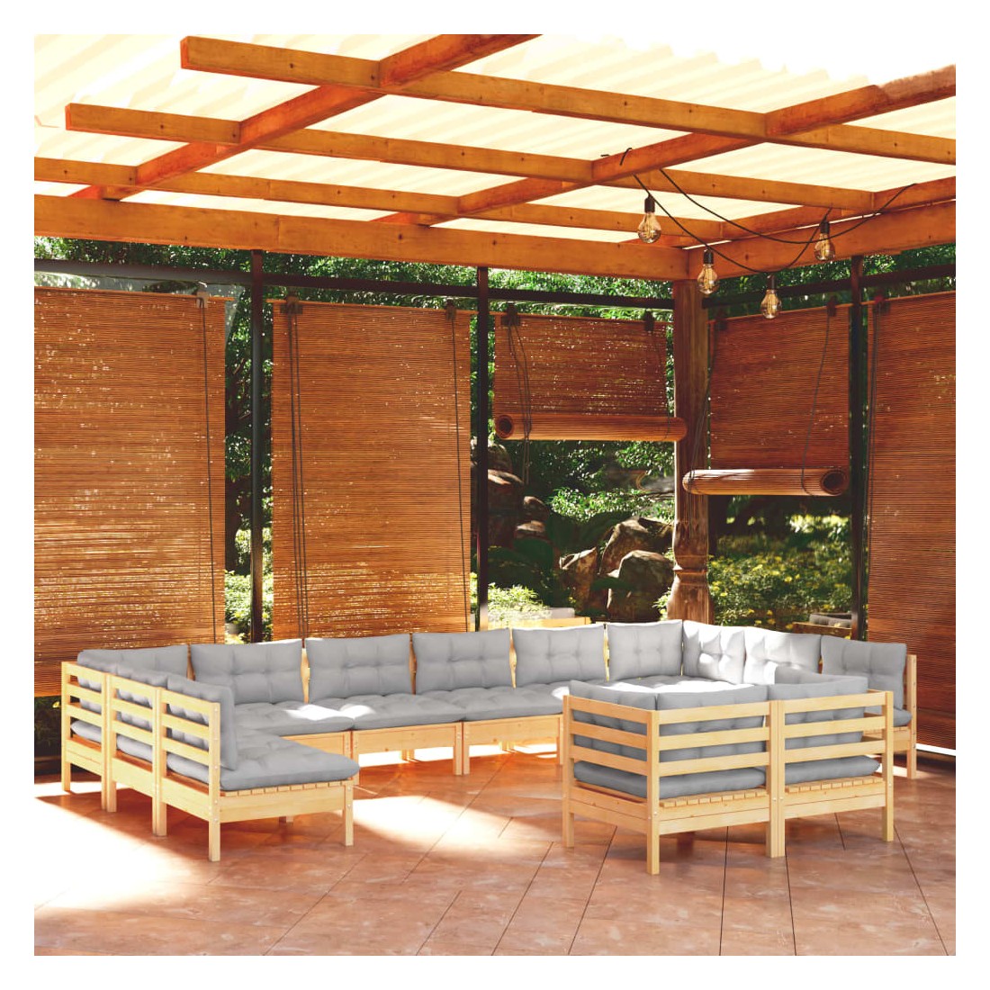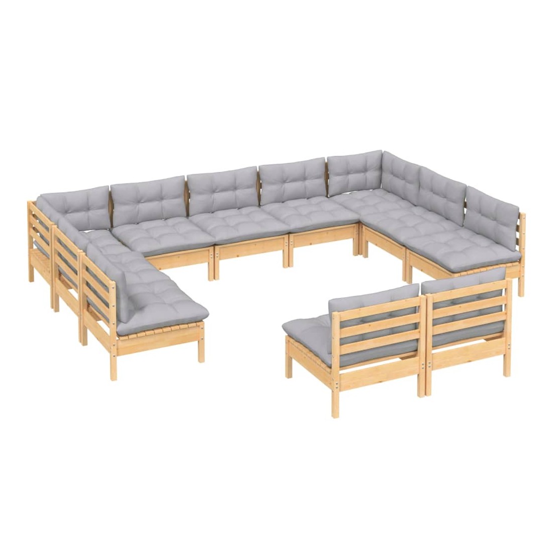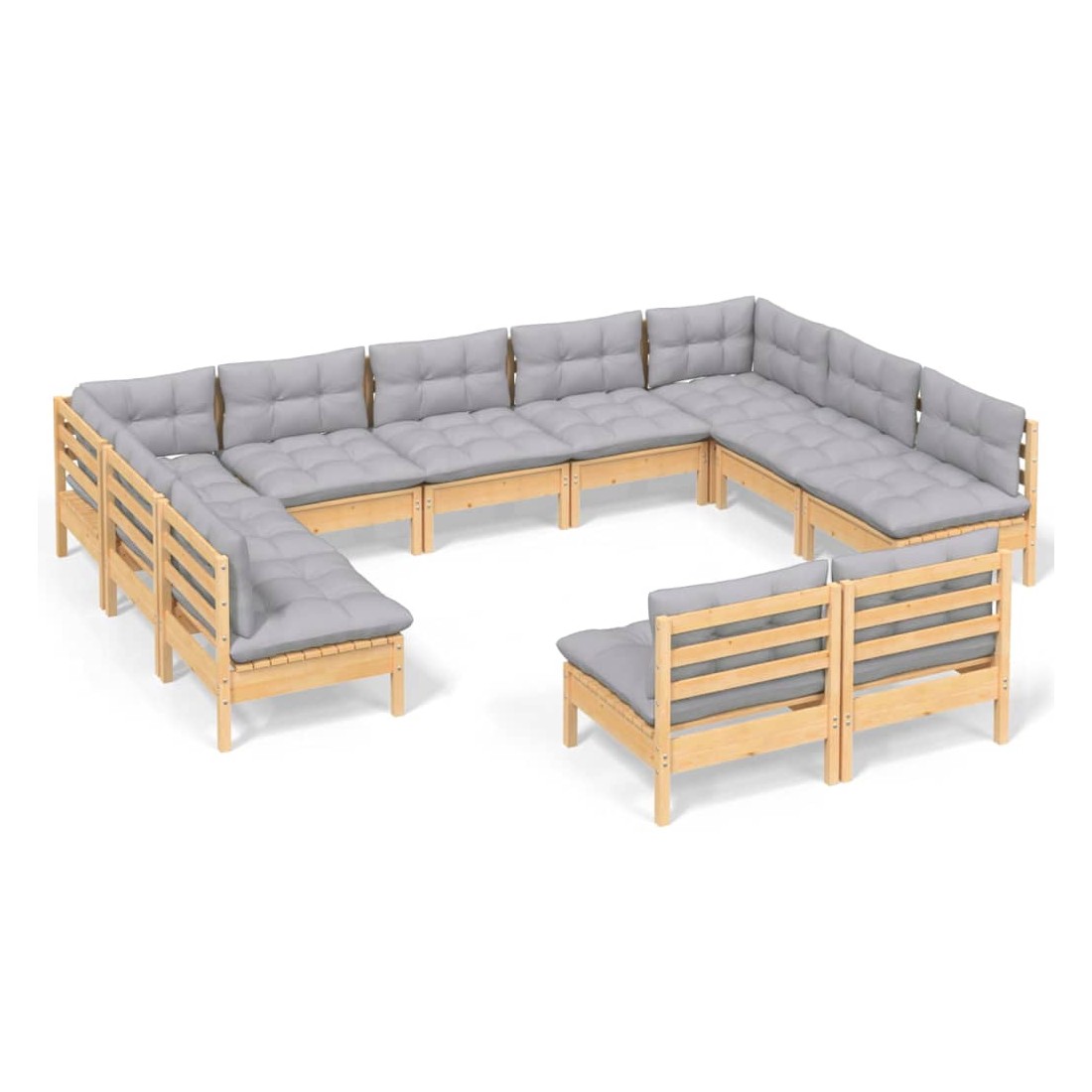 Salon de jardin 11 pcs avec coussins gris Bois de pin solide
