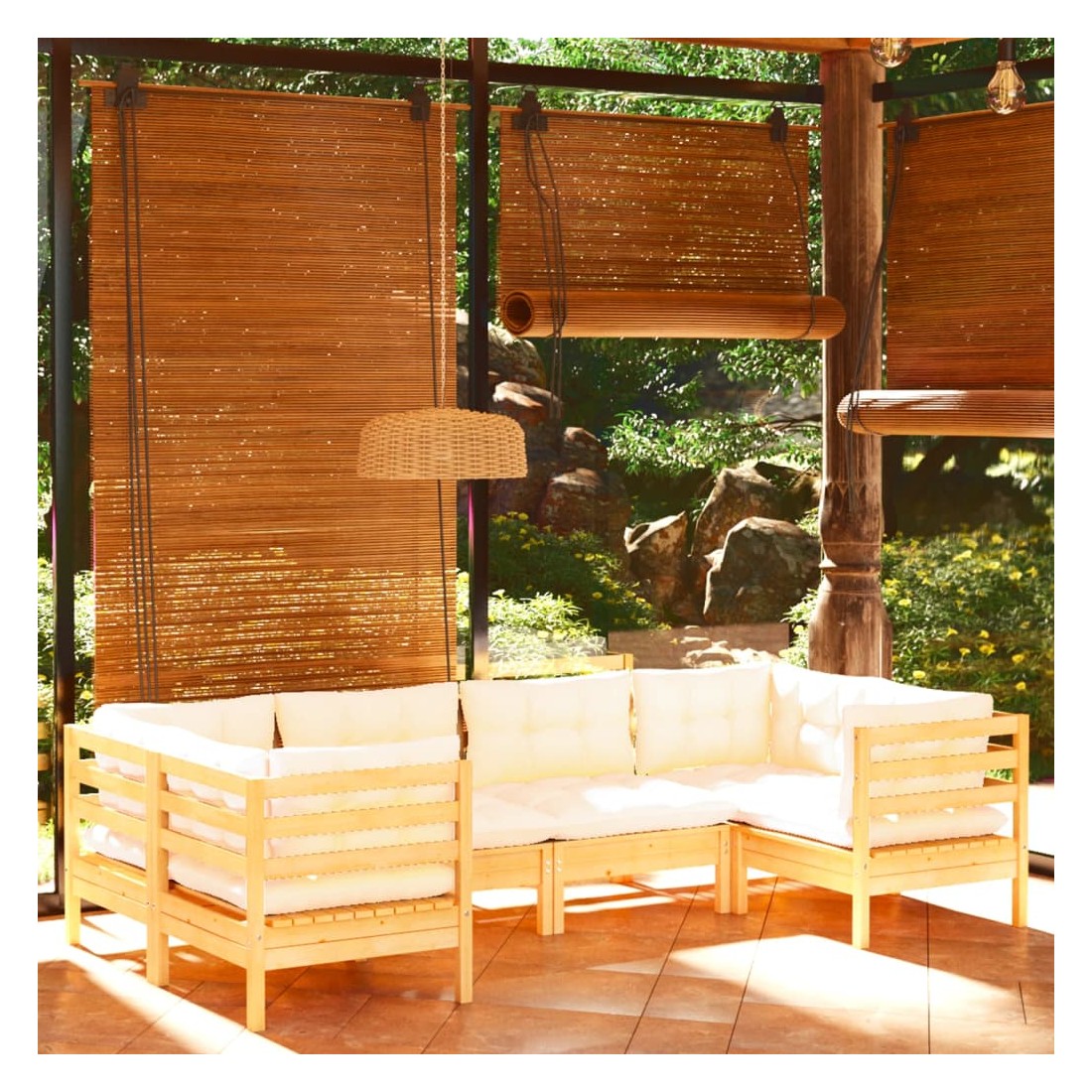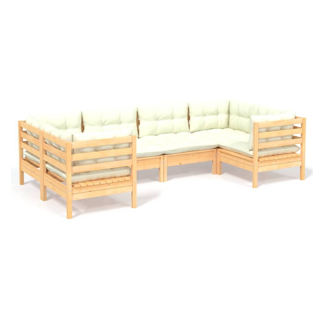 Salon de jardin 6 pcs avec coussins crème bois de pin