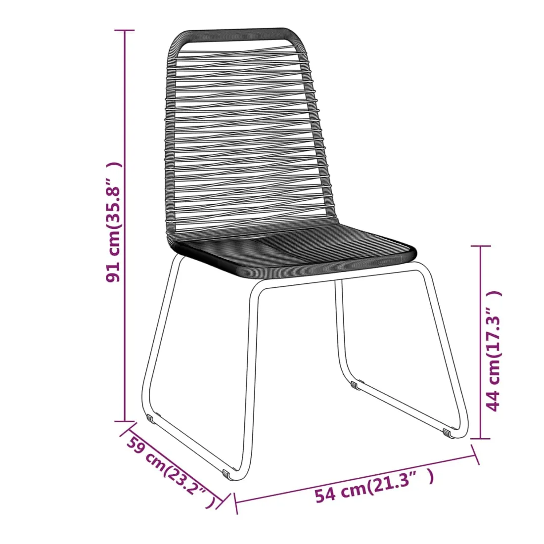 • Dimensions de la chaise : 54 x 59 x 91 cm (l x P x H)