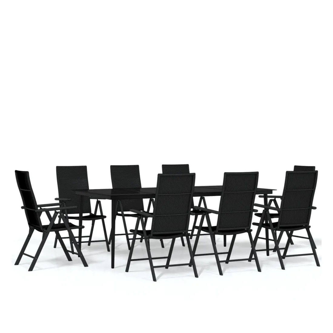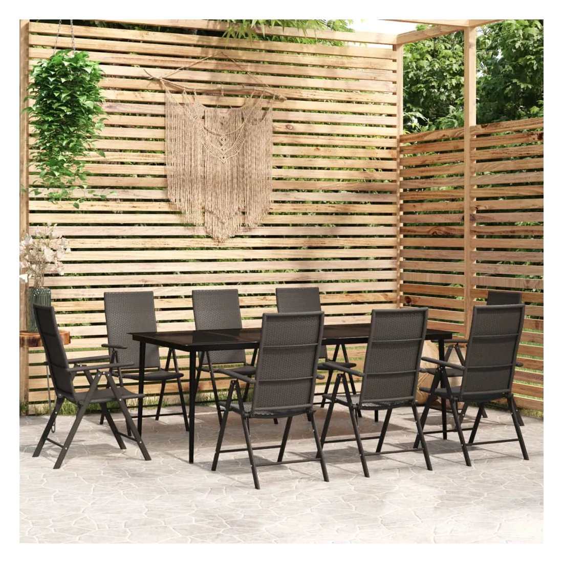 Créez une esthétique convaincante et uniforme dans votre espace extérieur avec cet ensemble de salle à manger de jardin ! Cette table de salle à manger de jardin est faite de cadre en acier enduit de poudre, ce qui la rend robuste et stable pour une utilisation quotidienne à l’extérieur. Le dessus de table en verre lisse est facile à nettoyer avec un chiffon humide et est parfait pour placer des repas, des boissons et d'autres objets décoratifs. Les chaises de patio sont en résine tressée, ce qui les rend légères et résistantes à l’eau. De plus, les dossiers des chaises sont inclinables sur 7 niveaux, ce qui vous permet de toujours trouver la position la plus confortable. Les chaises peuvent être pliées pour gagner de la place lorsqu'elles ne sont pas utilisées. Remarque : nous vous recommandons de couvrir le mobilier pendant la pluie, la neige ou le gel. Remarque : afin de prolonger la durée de vie des meubles d'extérieur, nous vous recommandons de les protéger avec une housse imperméable.