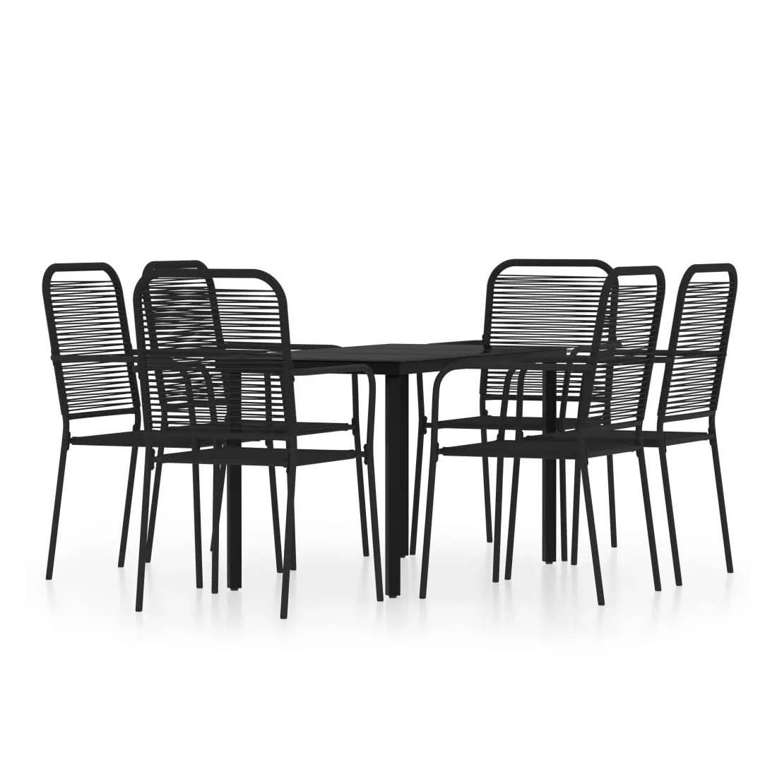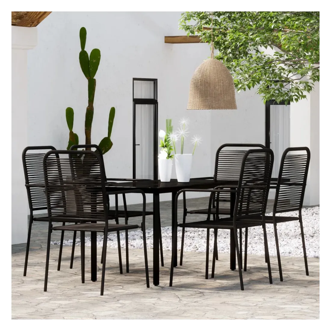 Cet ensemble de meubles de salle à manger tendance au design élégant et aux lignes épurées est un excellent choix pour votre jardin, patio, terrasse, cuisine et même salle à manger. L'élégance simpliste de cet ensemble de salle à manger rend votre dîner quotidien spécial. Cet ensemble de salle à manger de jardin dispose d’un cadre en acier enduit de poudre qui rend la table et les chaises stables et durables. Le dossier et le siège sont fabriqués en corde de coton torsadée, qui est douce au toucher et robuste pour une utilisation à long terme. De plus, la table est dotée d'un dessus en verre trempé, facile à nettoyer avec un chiffon humide et parfait pour placer des repas, des boissons et d'autres objets décoratifs. Remarque : afin de prolonger la durée de vie des meubles d'extérieur,