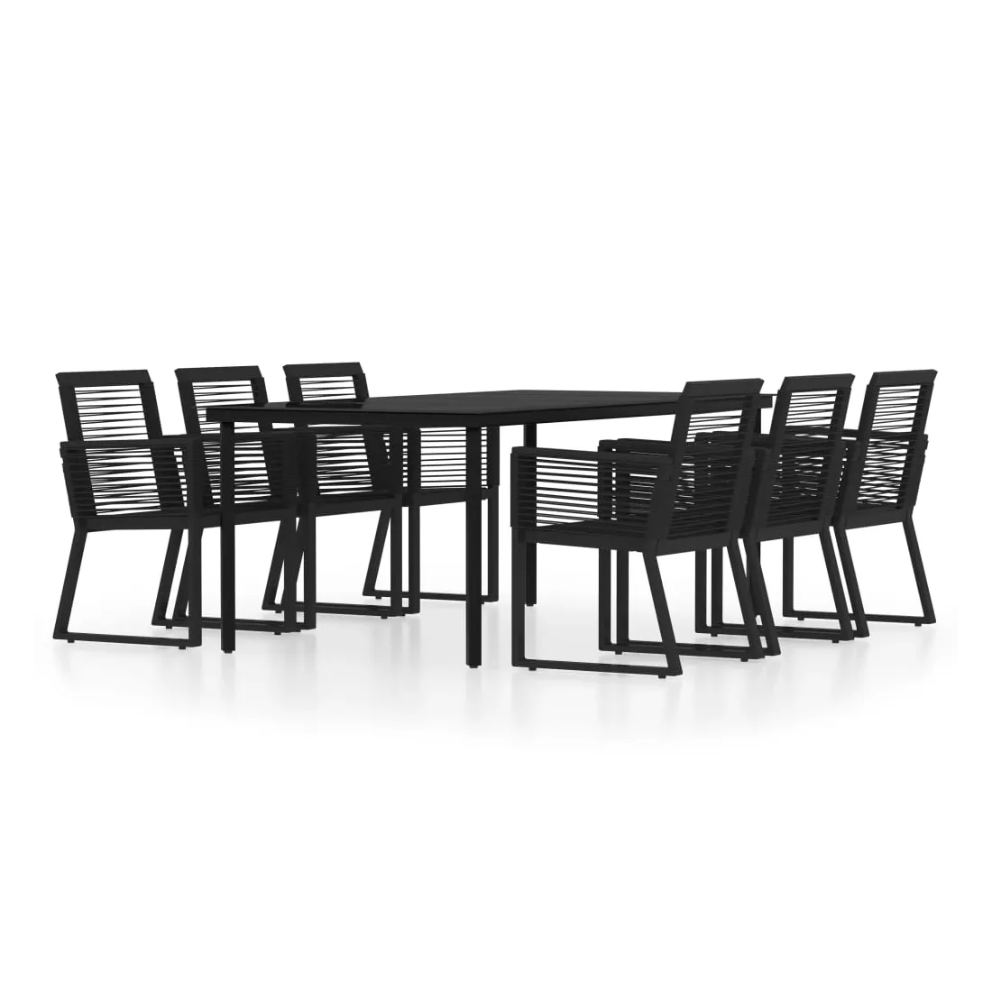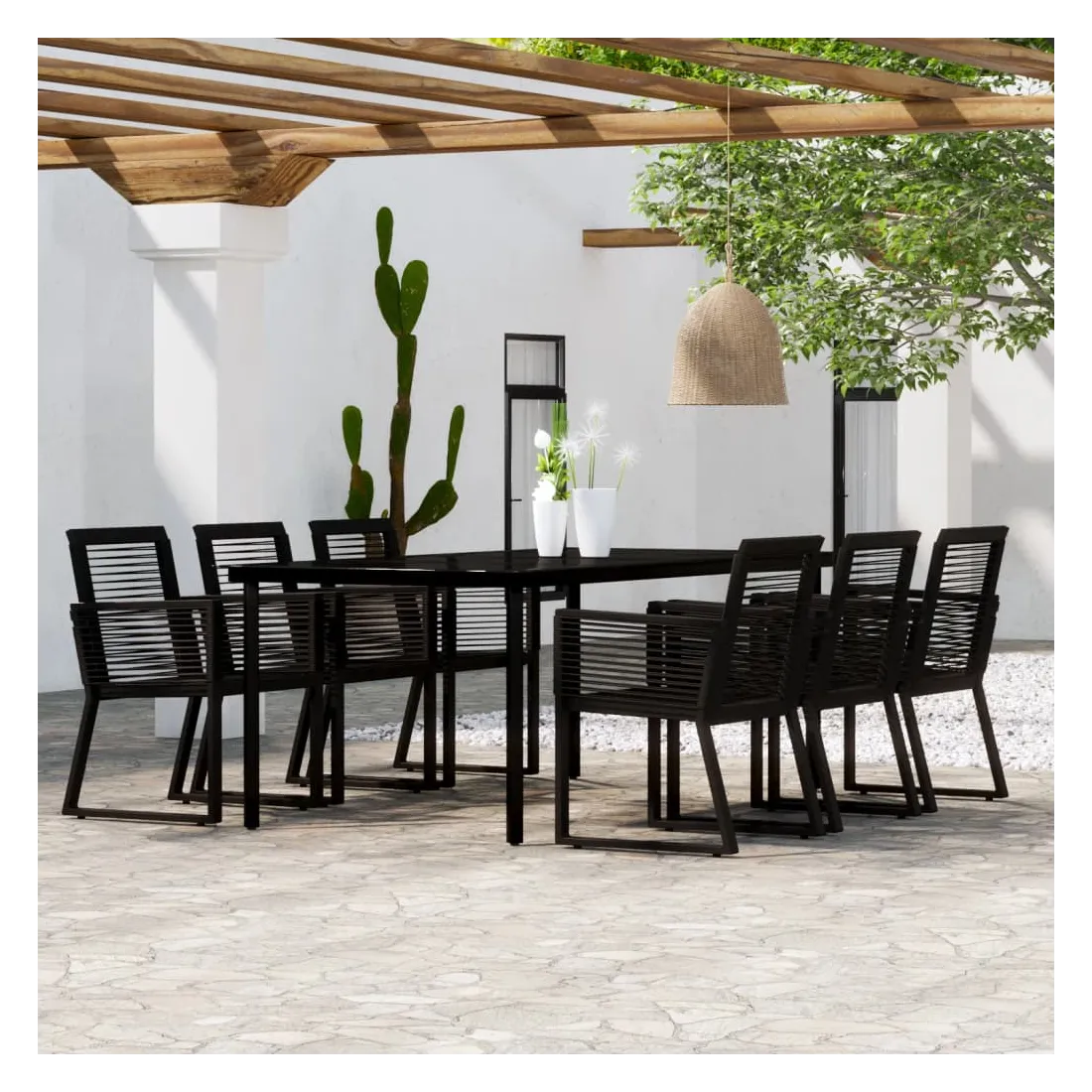 Créez une esthétique convaincante et uniforme dans votre espace extérieur avec cet ensemble de salle à manger de jardin ! Cadre stable : cette table de salle à manger est fabriquée avec un cadre en acier enduit de poudre, robuste et stable pour une utilisation quotidienne à l'extérieur.Dessus de table en verre : le dessus de table en verre lisse est facile à nettoyer avec un chiffon humide et est parfait pour placer des repas, des boissons et d'autres objets décoratifs. Matériau durable : les chaises de jardin sont fabriquées en rotin PVC, tissé sur un cadre en acier laqué fin, ce qui les rend stables et résistantes aux intempéries et aux rayons UV. Bon à savoir :Afin de prolonger la durée de vie de votre mobilier d'extérieur, nous vous recommandons de le protéger avec une housse imperméable.