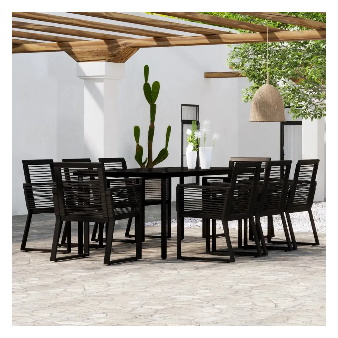 Créez une esthétique convaincante et uniforme dans votre espace extérieur avec cet ensemble de salle à manger de jardin ! Cette table de salle à manger est fabriquée avec un cadre en acier enduit de poudre, robuste et stable pour une utilisation quotidienne à l'extérieur. Le dessus de table en verre lisse est facile à nettoyer avec un chiffon humide et est parfait pour placer des repas, des boissons et d'autres objets décoratifs. Les chaises de jardin sont fabriquées en rotin PVC, tissé sur un cadre en acier laqué fin, ce qui les rend stables et résistantes aux intempéries et aux rayons UV. Remarque : afin de prolonger la durée de vie des meubles d'extérieur, nous vous recommandons de les protéger avec une housse imperméable.