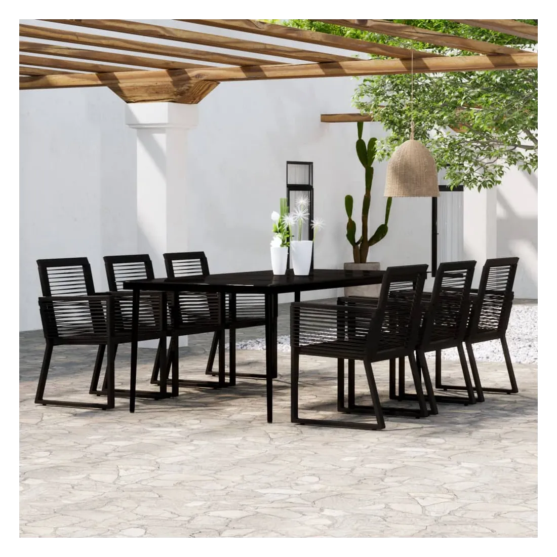 Créez une esthétique convaincante et uniforme dans votre espace extérieur avec cet ensemble de salle à manger de jardin ! Cette table de salle à manger est fabriquée avec un cadre en acier enduit de poudre, robuste et stable pour une utilisation quotidienne à l'extérieur. Le dessus de table en verre lisse est facile à nettoyer avec un chiffon humide et est parfait pour placer des repas, des boissons et d'autres objets décoratifs. Les chaises de jardin sont fabriquées en rotin PVC, tissé sur un cadre en acier laqué fin, ce qui les rend stables et résistantes aux intempéries et aux rayons UV. Remarque : afin de prolonger la durée de vie des meubles d'extérieur, nous vous recommandons de les protéger avec une housse imperméable.