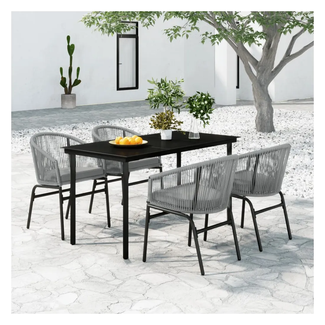 Créez une esthétique convaincante et uniforme dans votre espace extérieur avec cet ensemble de salle à manger de jardin ! Cet ensemble de repas de jardin est fait de cadre en acier enduit de poudre, ce qui le rend robuste et stable pour une utilisation quotidienne à l’extérieur. Le dessus de table en verre lisse est facile à nettoyer avec un chiffon humide et est parfait pour placer des repas, des boissons et d'autres objets décoratifs. Les chaises de patio sont en rotin PVC, ce qui les rend durables et résistantes aux intempéries et aux rayons UV. De plus, chaque siège est livré avec un coussin bien rembourré amovible pour plus de confort pendant votre temps de détente. Remarque : afin de prolonger la durée de vie des meubles d'extérieur, nous vous recommandons de les protéger avec une housse imperméable.