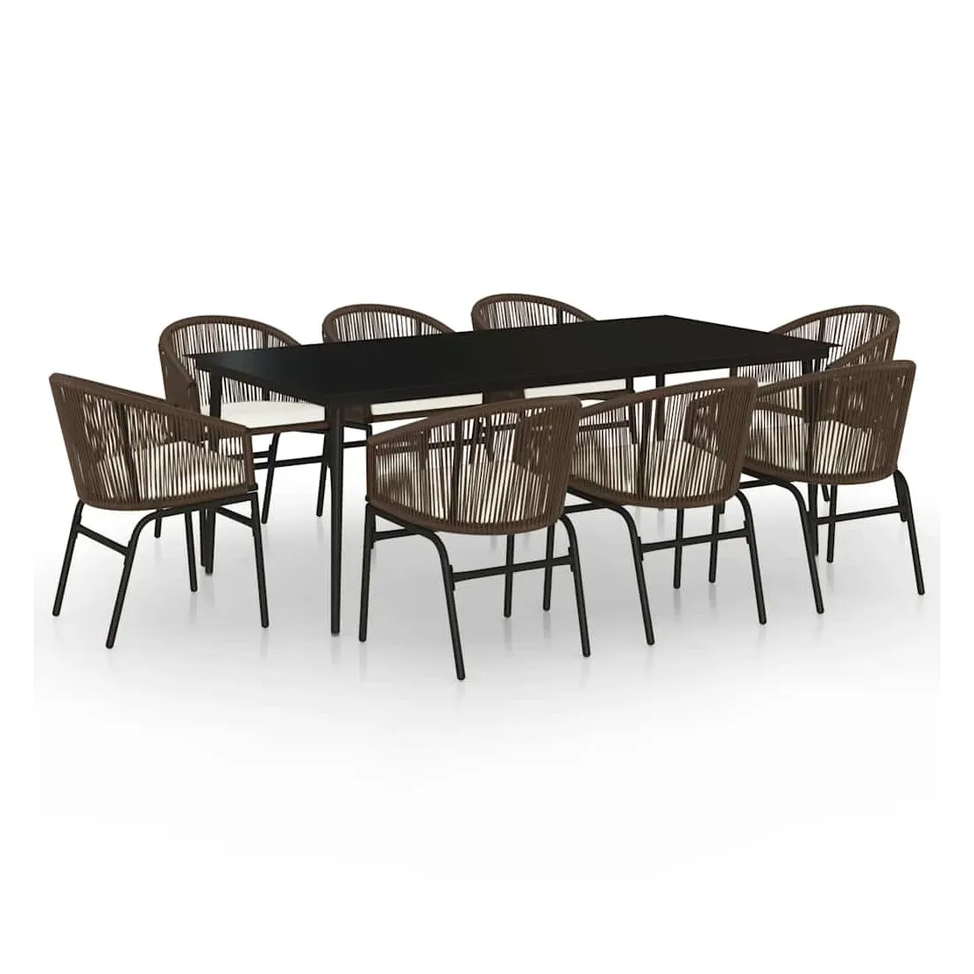 Créez une esthétique convaincante et uniforme dans votre espace extérieur avec cet ensemble de salle à manger de jardin ! Cet ensemble de repas de jardin est fait de cadre en acier enduit de poudre, ce qui le rend robuste et stable pour une utilisation quotidienne à l’extérieur. Le dessus de table en verre lisse est facile à nettoyer avec un chiffon humide et est parfait pour placer des repas, des boissons et d'autres objets décoratifs. Les chaises de patio sont en rotin PVC, ce qui les rend durables et résistantes aux intempéries et aux rayons UV. De plus, chaque siège est livré avec un coussin bien rembourré amovible pour plus de confort pendant votre temps de détente. Remarque : afin de prolonger la durée de vie des meubles d'extérieur, nous vous recommandons de les protéger avec une housse imperméable.