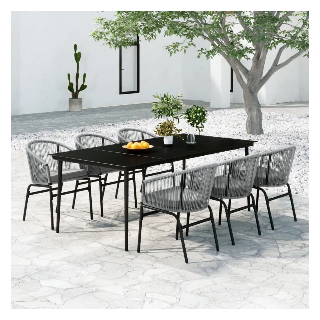 Créez une esthétique convaincante et uniforme dans votre espace extérieur avec cet ensemble de salle à manger de jardin ! Cet ensemble de repas de jardin est fait de cadre en acier enduit de poudre, ce qui le rend robuste et stable pour une utilisation quotidienne à l’extérieur. Le dessus de table en verre lisse est facile à nettoyer avec un chiffon humide et est parfait pour placer des repas, des boissons et d'autres objets décoratifs. Les chaises de patio sont en rotin PVC, ce qui les rend durables et résistantes aux intempéries et aux rayons UV. De plus, chaque siège est livré avec un coussin bien rembourré amovible pour plus de confort pendant votre temps de détente. Remarque : afin de prolonger la durée de vie des meubles d'extérieur, nous vous recommandons de les protéger avec une housse imperméable.