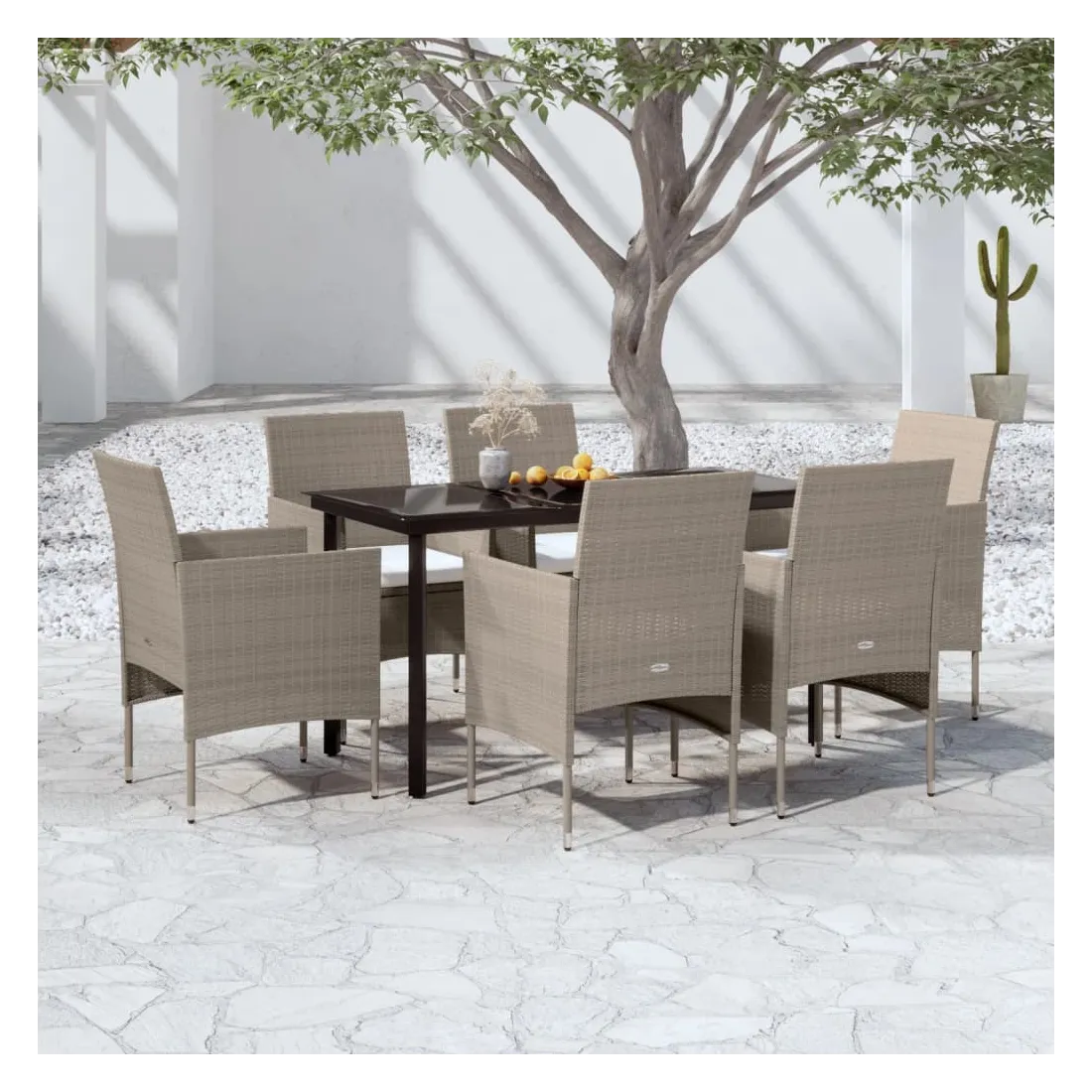 Ensemble à manger de jardin coussins 7 pcs Beige/noir