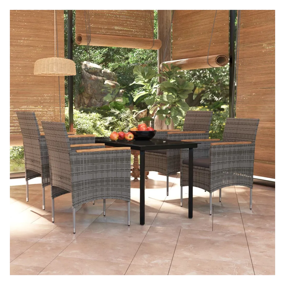 Cet ensemble de salle à manger de jardin est un excellent choix pour manger ou vous détendre dans l'espace extérieur ! Les cadres en acier enduit de poudre rendent la table et les chaises robustes et stables pour une utilisation quotidienne à l'extérieur. Grâce à la résine tressée résistante à l’eau, les chaises sont faciles à nettoyer et conviennent à un usage quotidien. Le dessus de table en verre lisse est facile à nettoyer avec un chiffon humide et parfait pour placer les repas, les boissons et autres articles décoratifs. Remarque : afin de prolonger la durée de vie des meubles d'extérieur, nous vous recommandons de les protéger avec une housse imperméable.