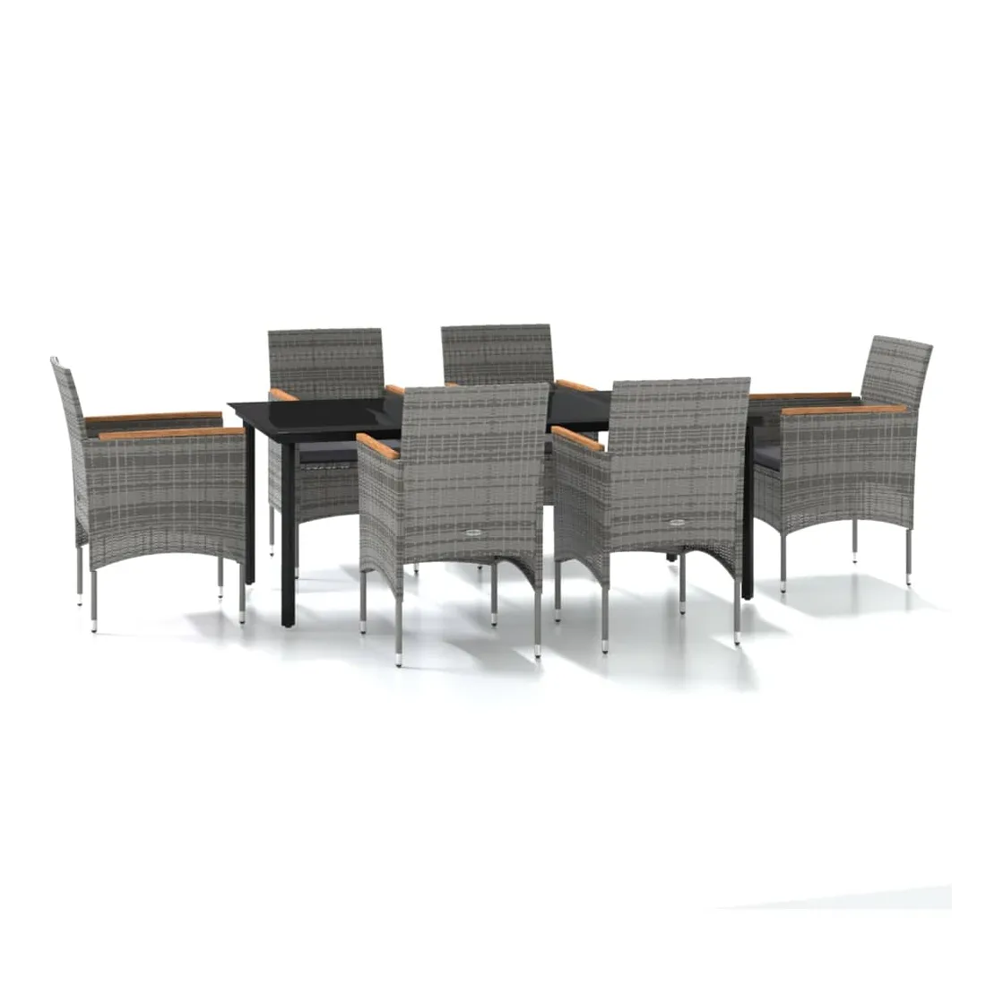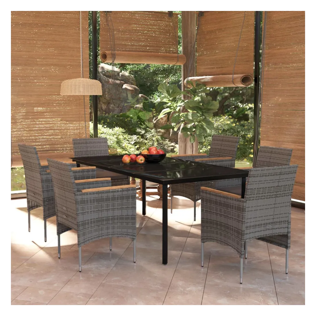 Ensemble à manger de jardin coussins 7pcs Gris et noir
