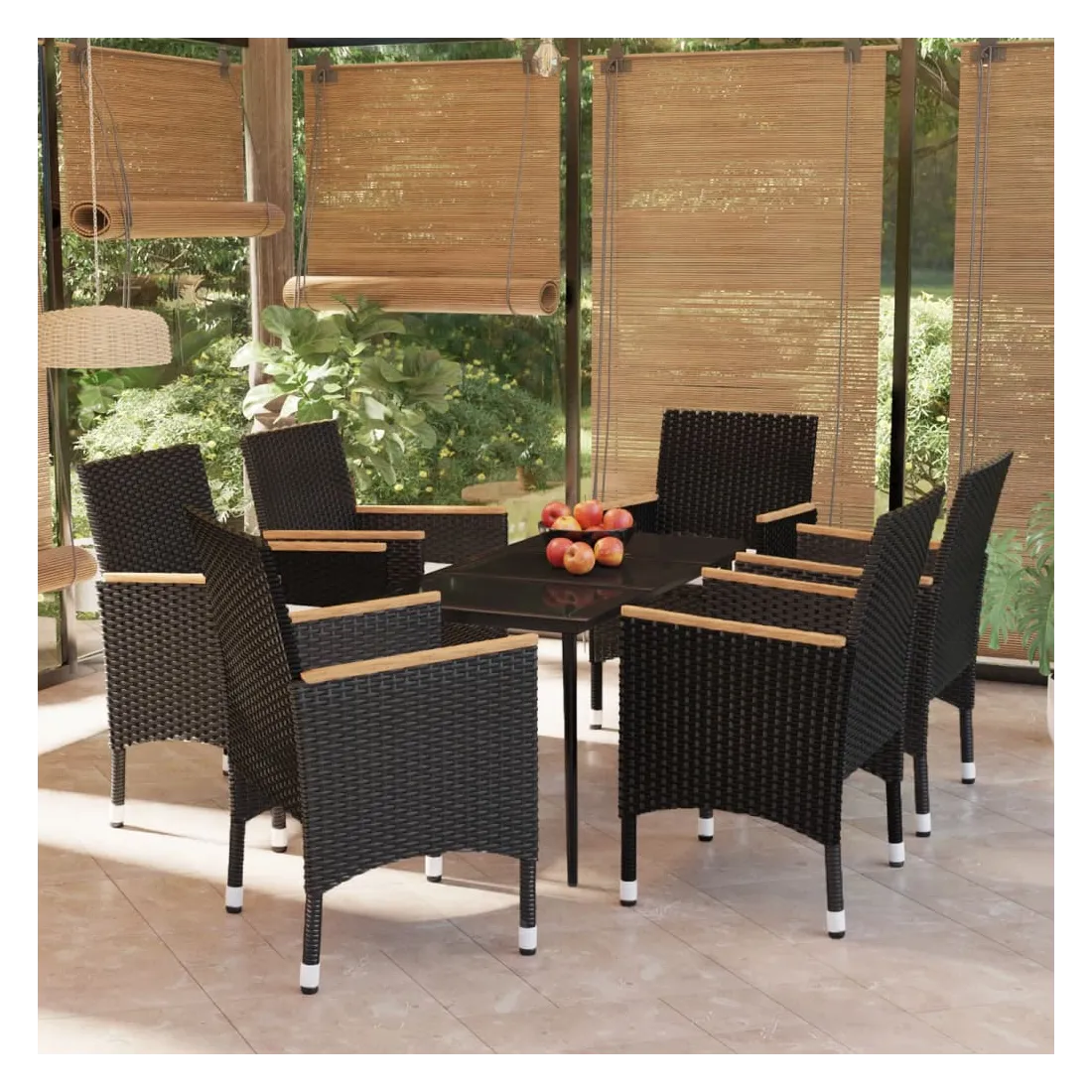 - Matériau : résine tressée, acier enduit de poudre, verre, bois d'acacia massif