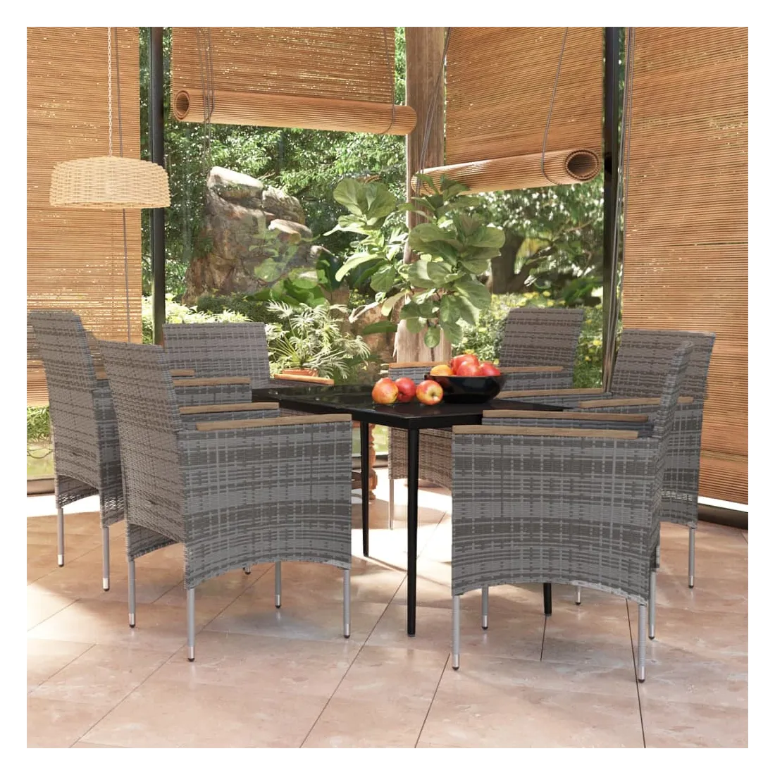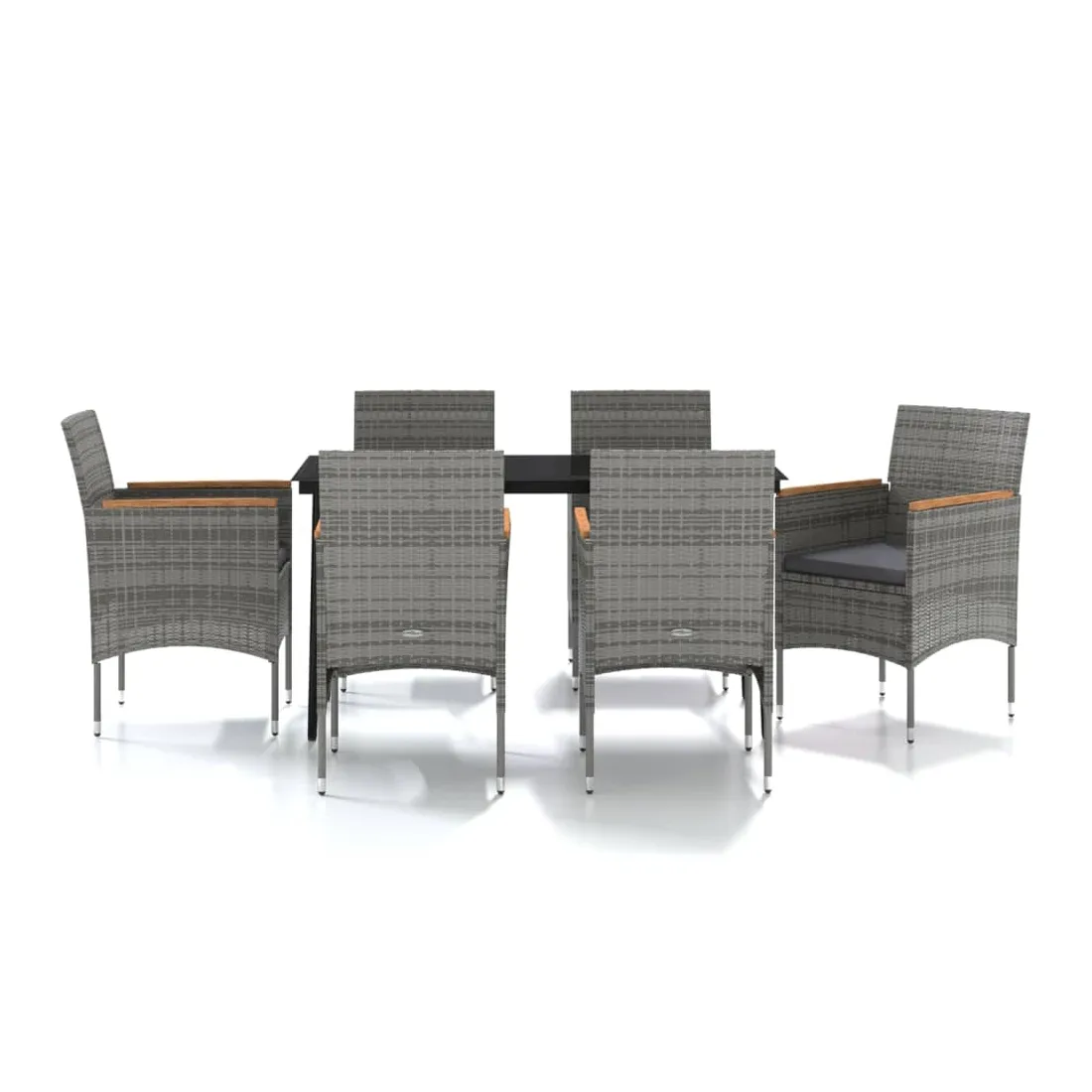 Ensemble à manger de jardin coussins 7pcs Gris et noir