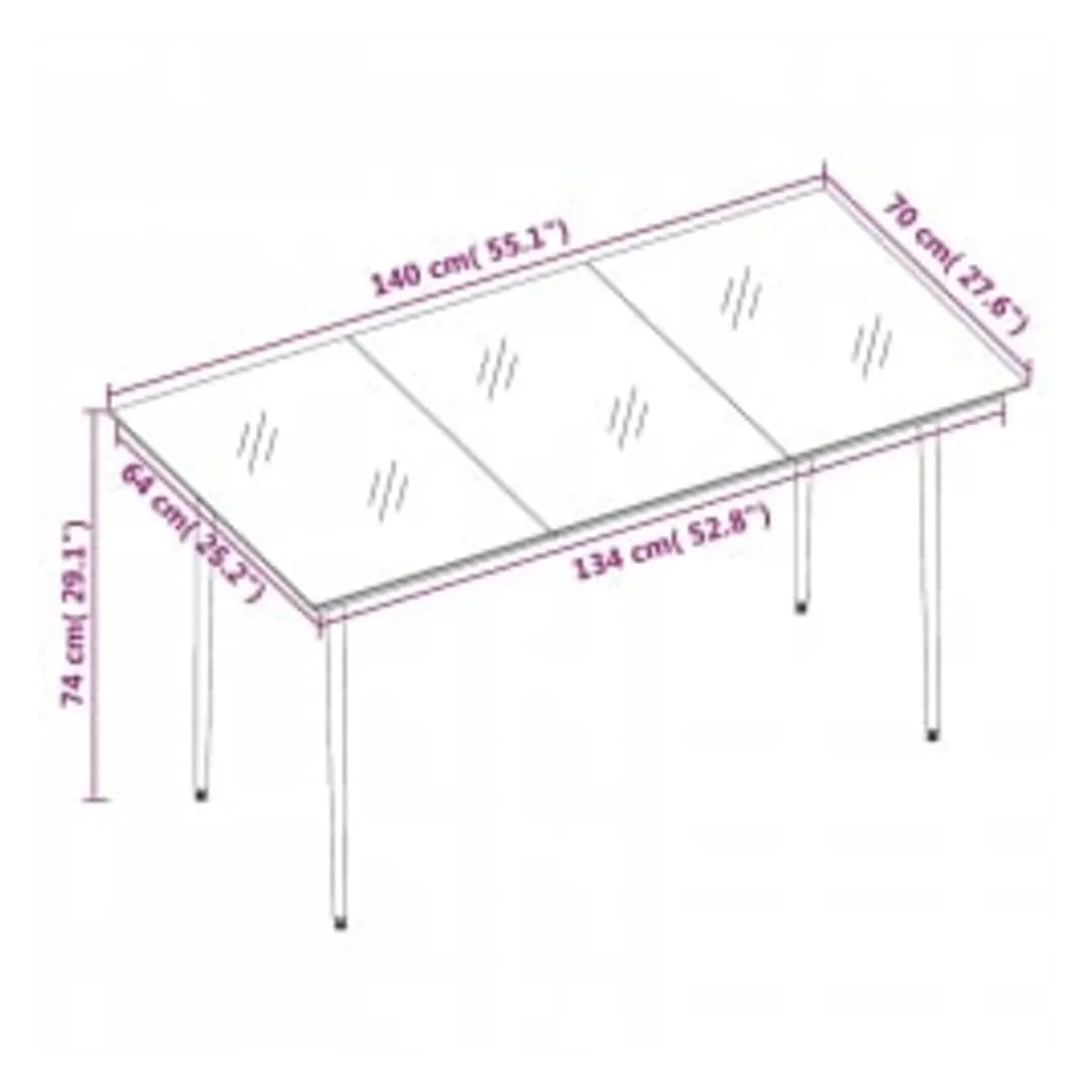 • Dimensions de la table : 140 x 70 x 74 cm (L x l x H)