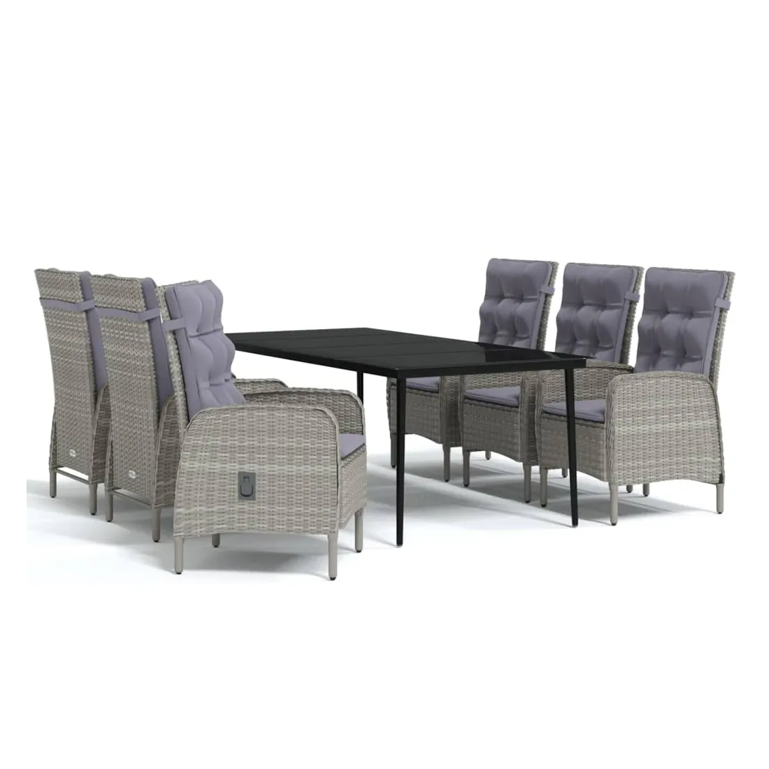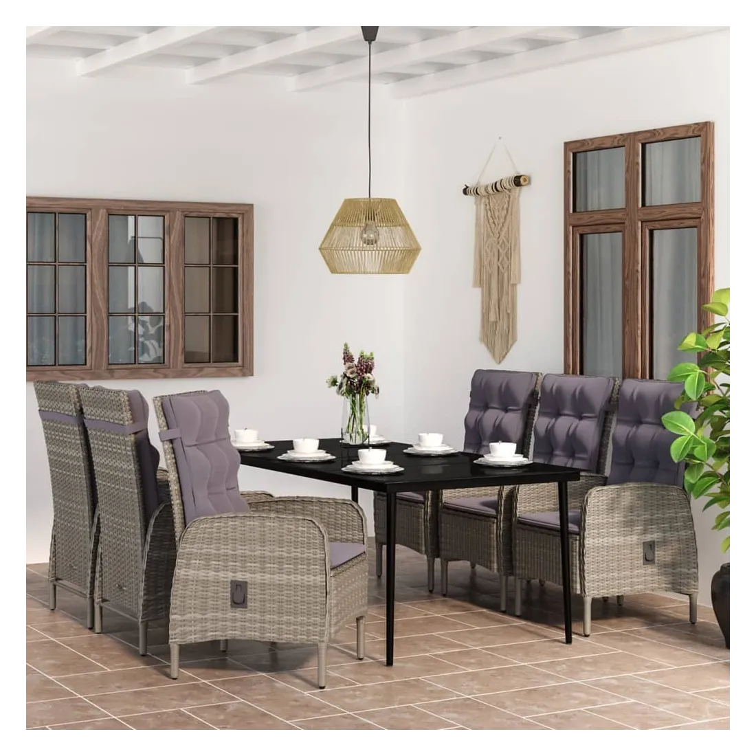 Cet ensemble de salle à manger de jardin est un excellent choix pour manger ou vous détendre dans l'espace extérieur ! Les cadres en acier enduit de poudre rendent la table et les chaises robustes et stables pour une utilisation quotidienne en extérieur. Grâce à la résine tressée résistante à l’eau, les chaises sont faciles à nettoyer et conviennent à un usage quotidien. Conçues avec un dossier et des accoudoirs incurvés, ces chaises ont une forme plus ergonomique pour un confort maximal. Le dessus de table en verre lisse est facile à nettoyer avec un chiffon humide et parfait pour placer les repas, les boissons et autres articles décoratifs. Remarque : afin de prolonger la durée de vie des meubles d'extérieur, nous vous recommandons de les protéger avec une housse imperméable.