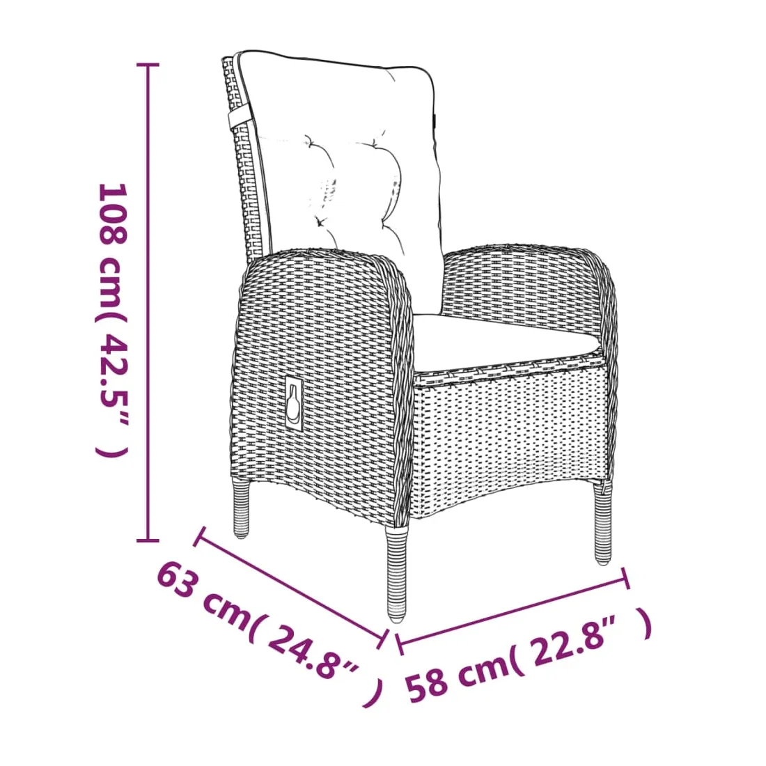 - Dimensions de la chaise : 58 x 63 x 108 cm (l x P x H)
