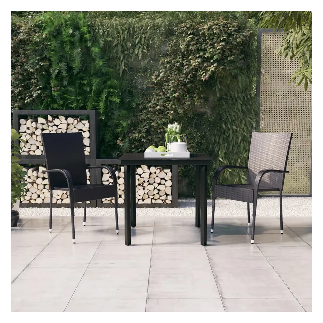 Ensemble à manger de jardin 3 pcs Noir