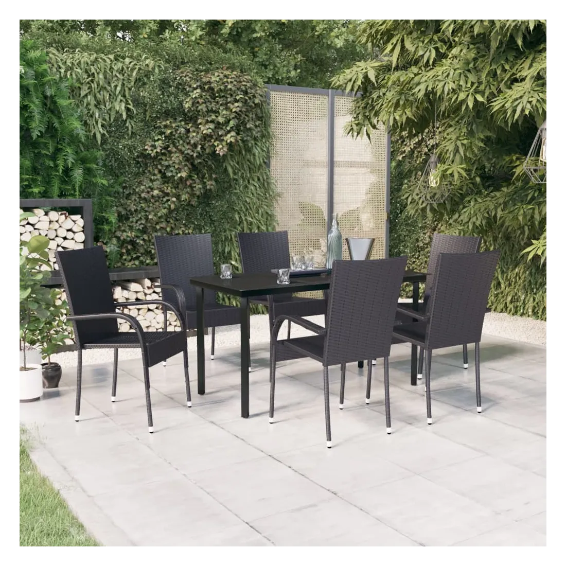 Ensemble à manger de jardin 7 pcs Noir