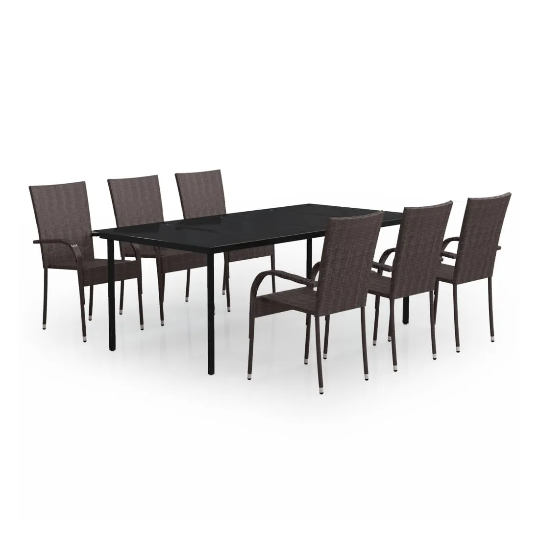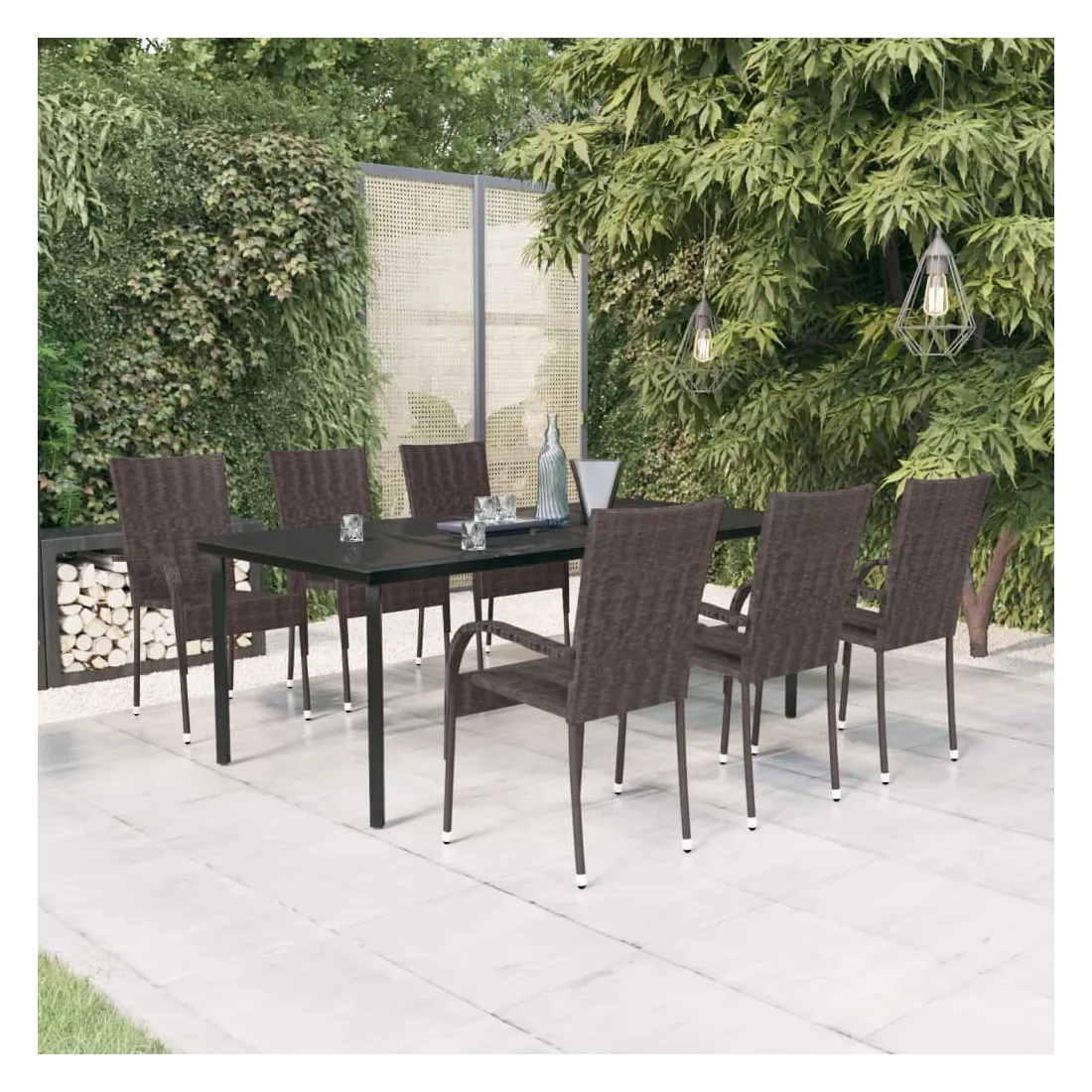 Ensemble à manger de jardin 7 pcs Marron et noir