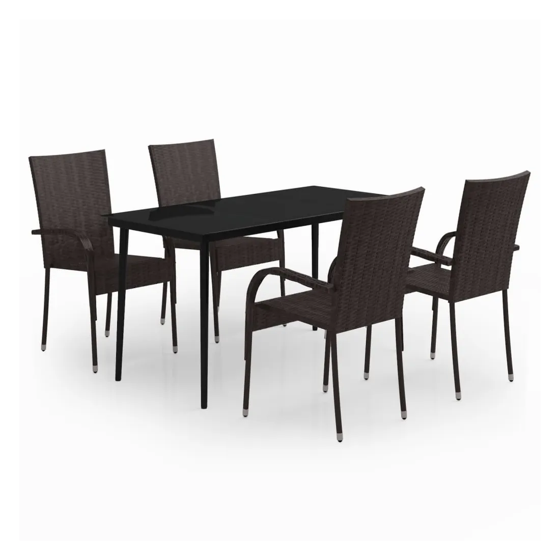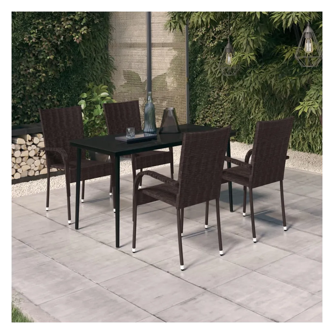 Ensemble à manger de jardin 5 pcs Marron et noir