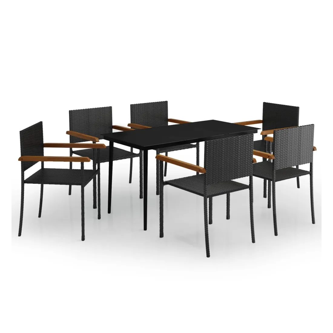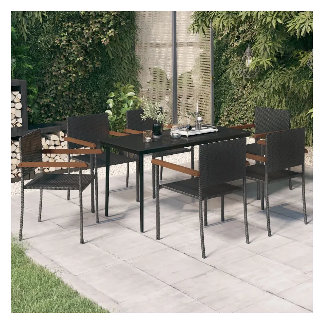 Cet élégant ensemble de salle à manger de jardin est destiné à être le point de mire de votre jardin ou patio ! C'est un excellent choix pour les repas en plein air ou pour vous détendre dans l'espace extérieur ! Les cadres en acier enduit de poudre rendent la table et les chaises robustes et stables pour une utilisation quotidienne en extérieur. Grâce à la résine tressée résistante à l’eau, les chaises sont faciles à nettoyer et résistantes à l'usure. Le dessus de table en verre lisse est facile à nettoyer avec un chiffon humide et parfait pour placer les repas, les boissons et autres articles décoratifs. Remarque : afin de prolonger la durée de vie des meubles d'extérieur, nous vous recommandons de les protéger avec une housse imperméable.