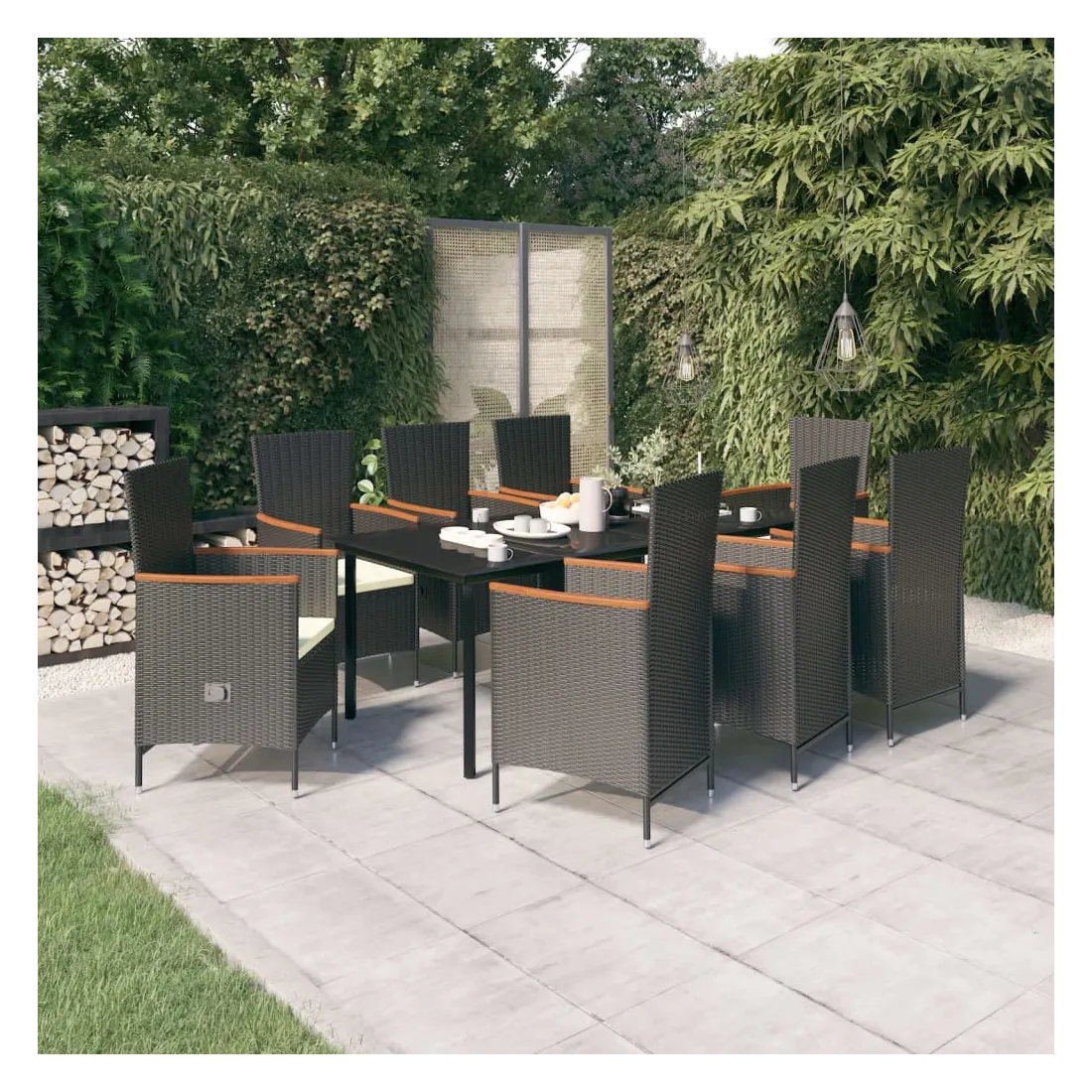 - Matériau : résine tressée, bois d'acacia massif, acier enduit de poudre, verre