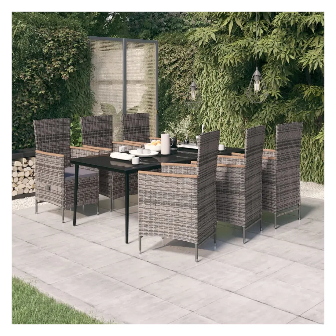 Ensemble à manger de jardin avec coussins 7 pcs Gris