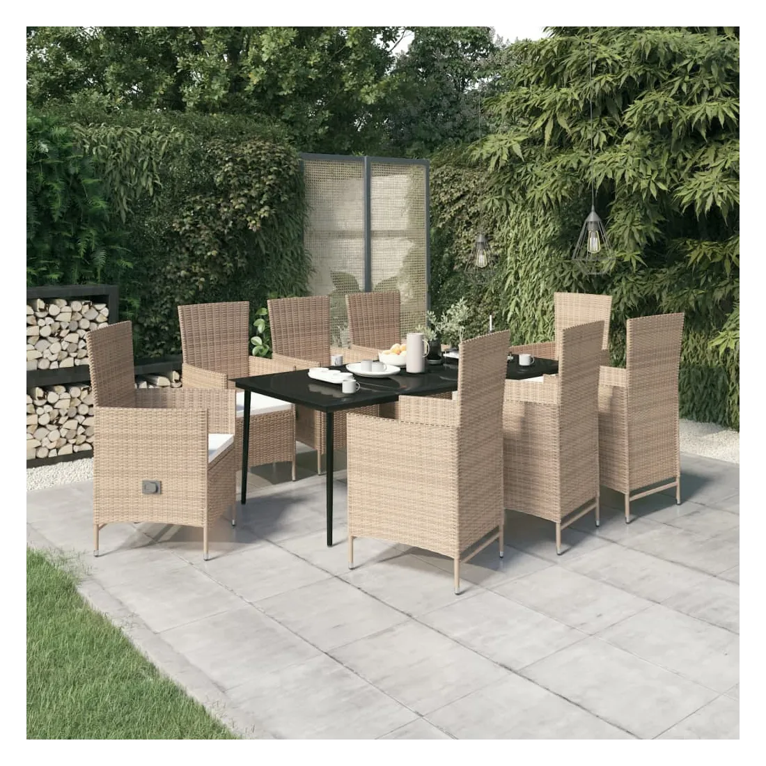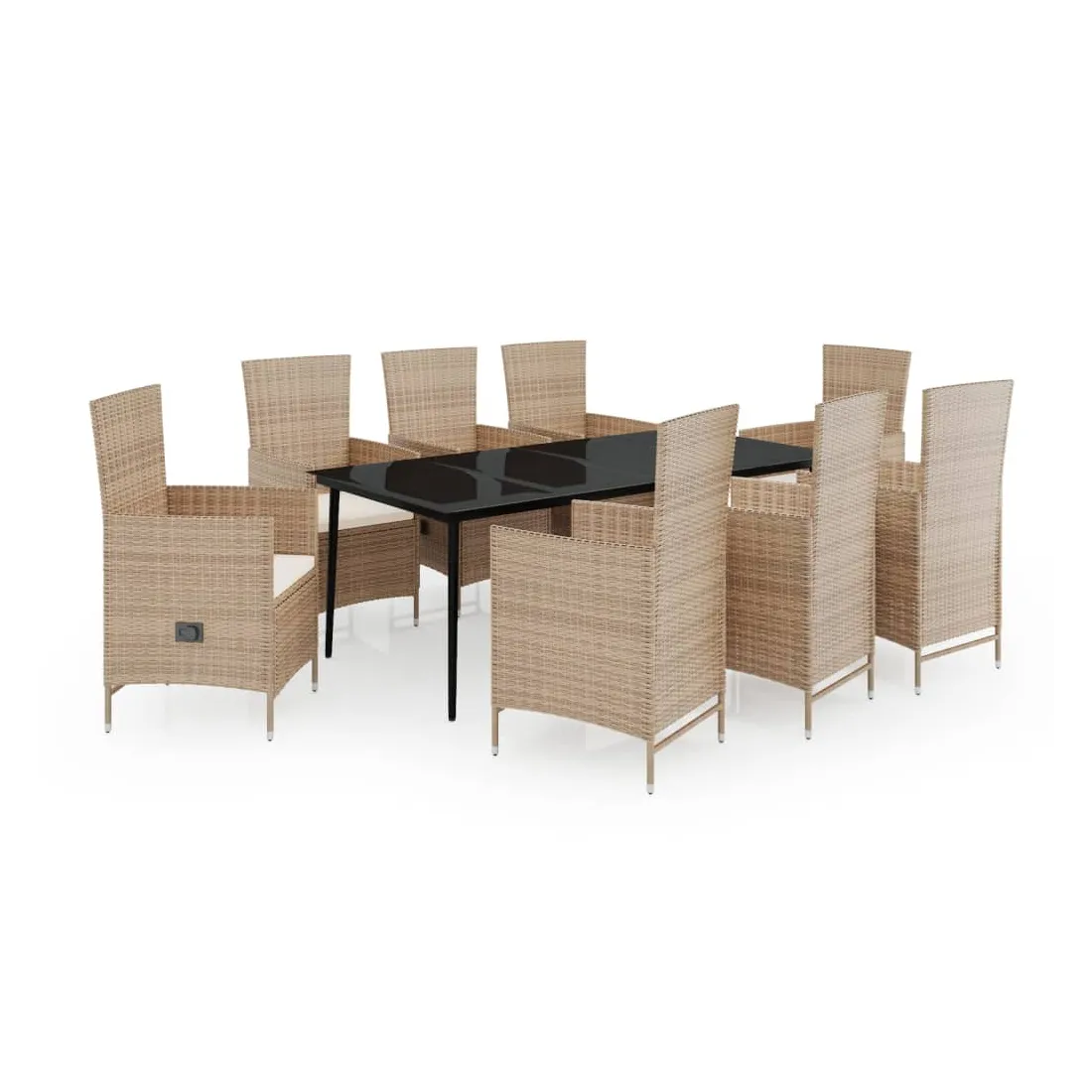 Ensemble à manger de jardin avec coussins 9 pcs Beige