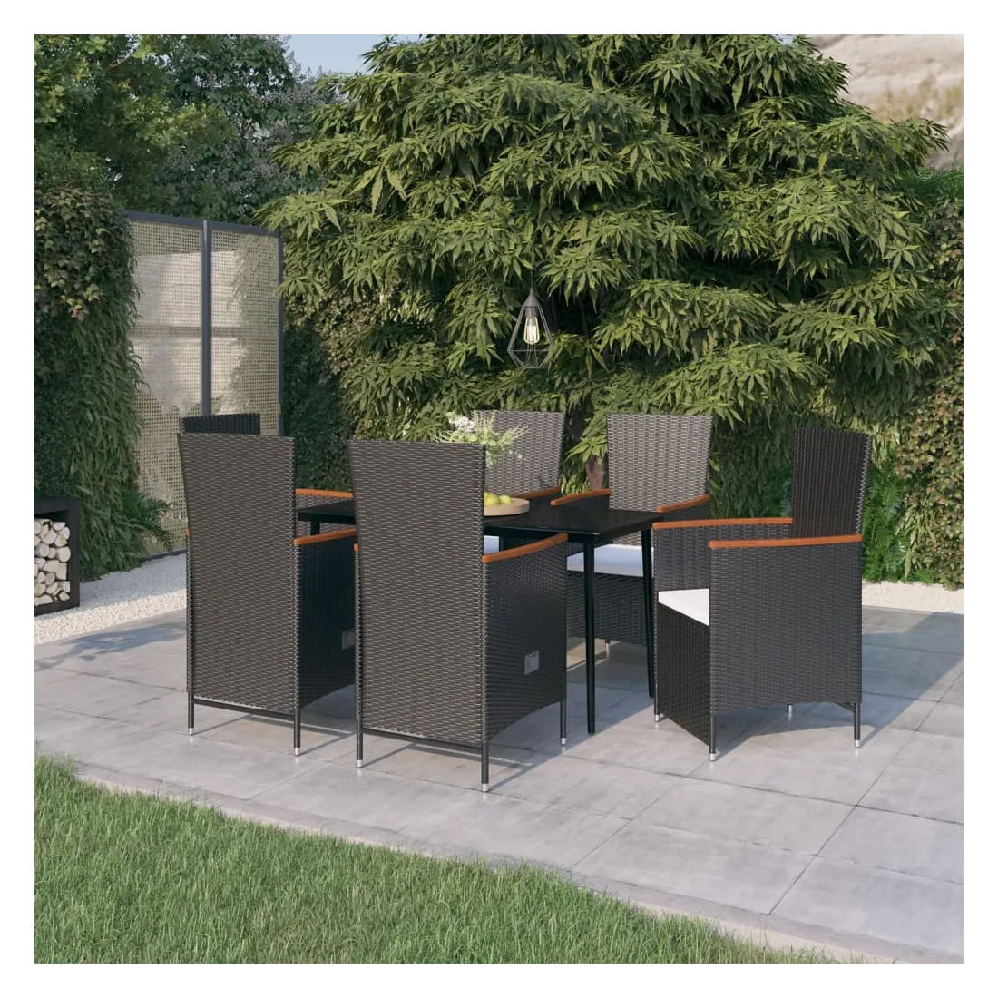 - Matériau : résine tressée, bois d'acacia massif, acier enduit de poudre, verre