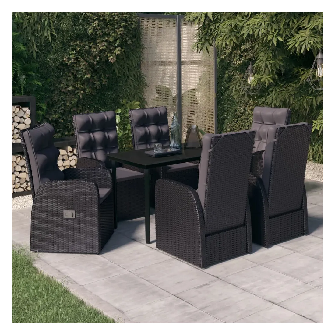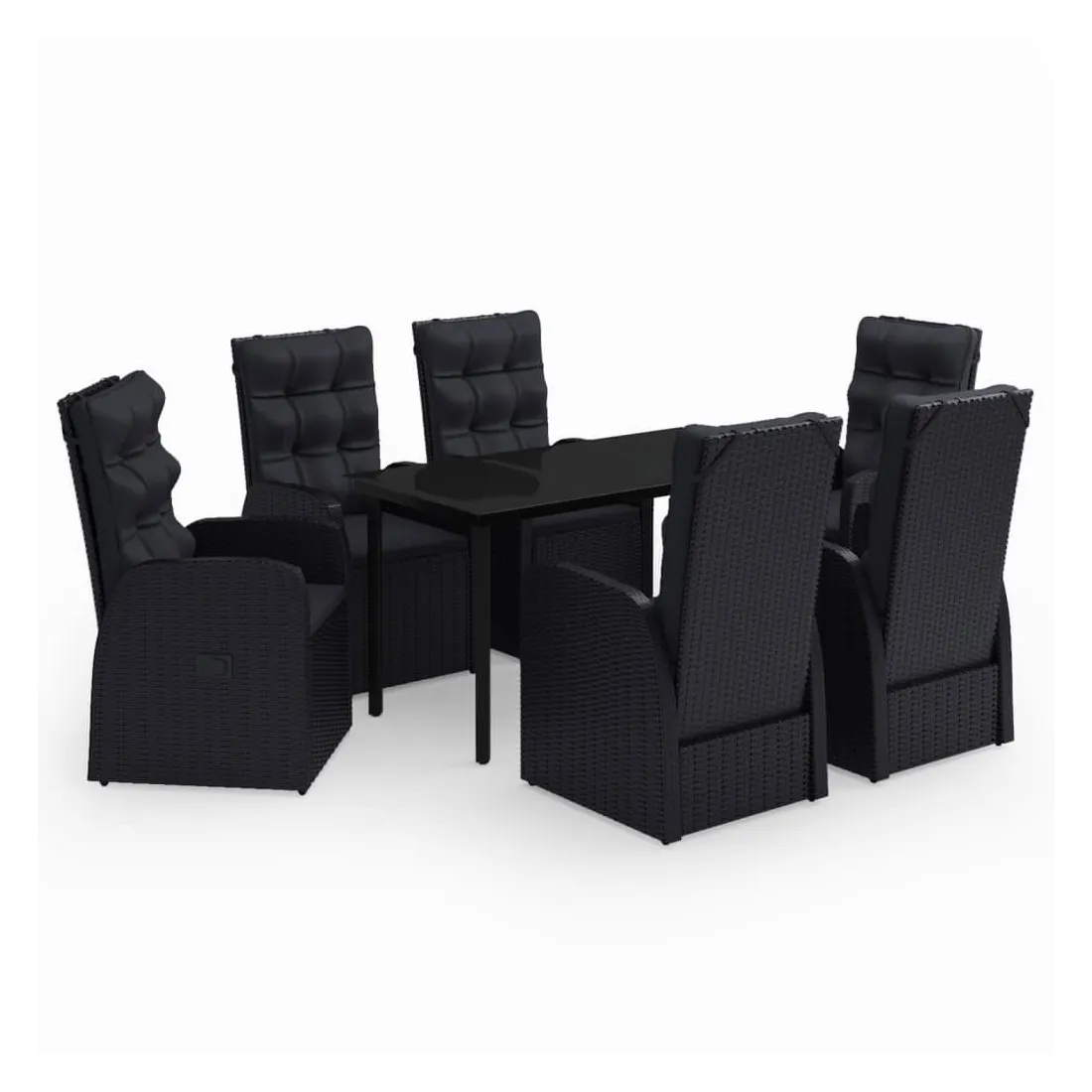 Ensemble à manger de jardin avec coussins 7 pcs Noir