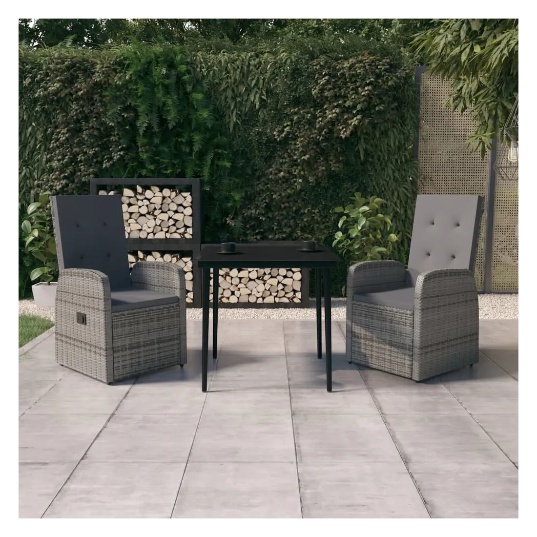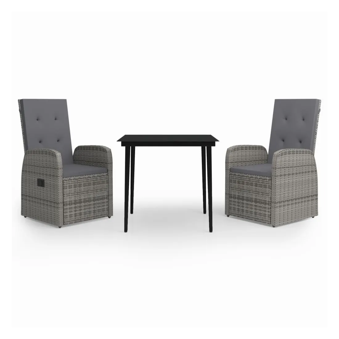 Ensemble à manger de jardin avec coussins 3 pcs Gris