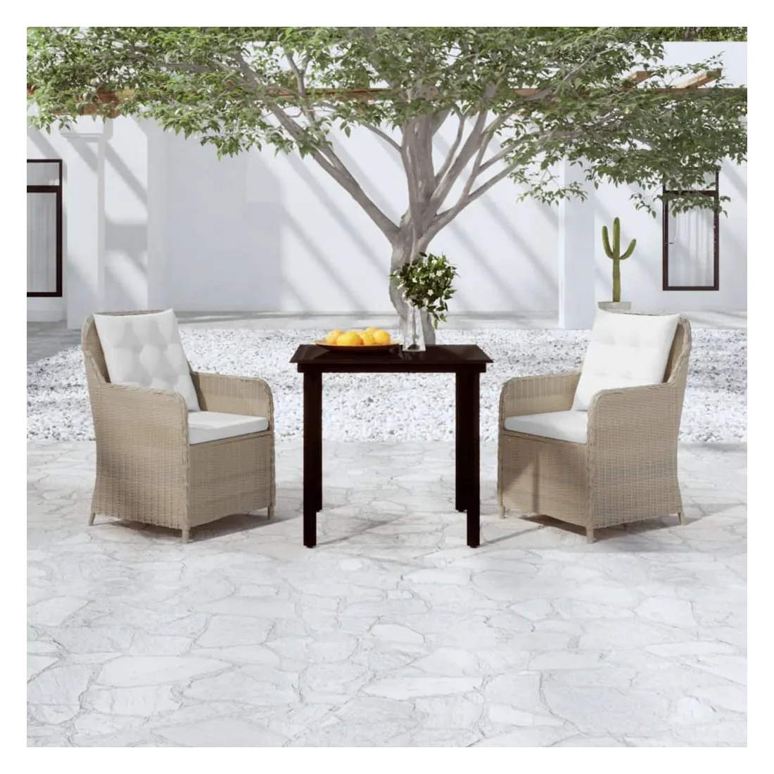 Profitez d'un bon repas ou d'un thé l'après-midi dans votre espace extérieur avec cet ensemble de salle à manger de jardin ! Ayant un design élégant, il deviendra le point central de votre jardin et de votre terrasse ! L'ensemble de salle à manger d'extérieur pratique a un cadre en acier, ce qui le rend solide et robuste. Les chaises de jardin sont faites de résine tressée résistante à l'eau et sans entretien, ce qui les rend parfaites pour une utilisation extérieure. La forme ergonomique et les coussins amovibles bien rembourrés de mousse offrent un confort d'assise ultime. Les housses d'oreiller et de coussin en polyester nécessitant peu d'entretien peuvent être facilement retirées et lavées. De plus, le dessus de table en verre lisse est facile à nettoyer avec un chiffon humide et excellent pour placer repas, boissons et autres articles décoratifs. Remarque : afin de prolonger la durée de vie des meubles d'extérieur, nous vous recommandons de les protéger avec une housse imperméable.