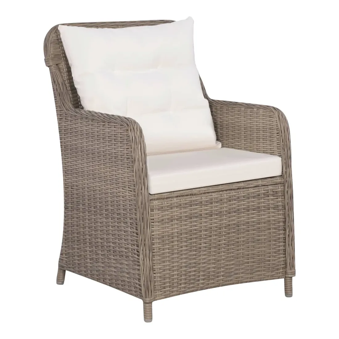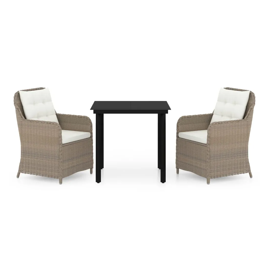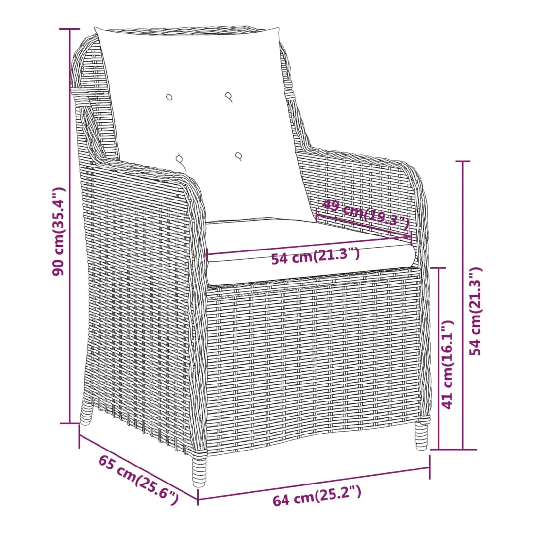 Profitez d'un bon repas ou d'un thé l'après-midi dans votre espace extérieur avec cet ensemble de salle à manger de jardin ! Ayant un design élégant, il deviendra le point central de votre jardin et de votre terrasse ! L'ensemble de salle à manger d'extérieur pratique a un cadre en acier, ce qui le rend solide et robuste. Les chaises de jardin sont faites de résine tressée résistante à l'eau et sans entretien, ce qui les rend parfaites pour une utilisation extérieure. La forme ergonomique et les coussins amovibles bien rembourrés de mousse offrent un confort d'assise ultime. Les housses d'oreiller et de coussin en polyester nécessitant peu d'entretien peuvent être facilement retirées et lavées. De plus, le dessus de table en verre lisse est facile à nettoyer avec un chiffon humide et e