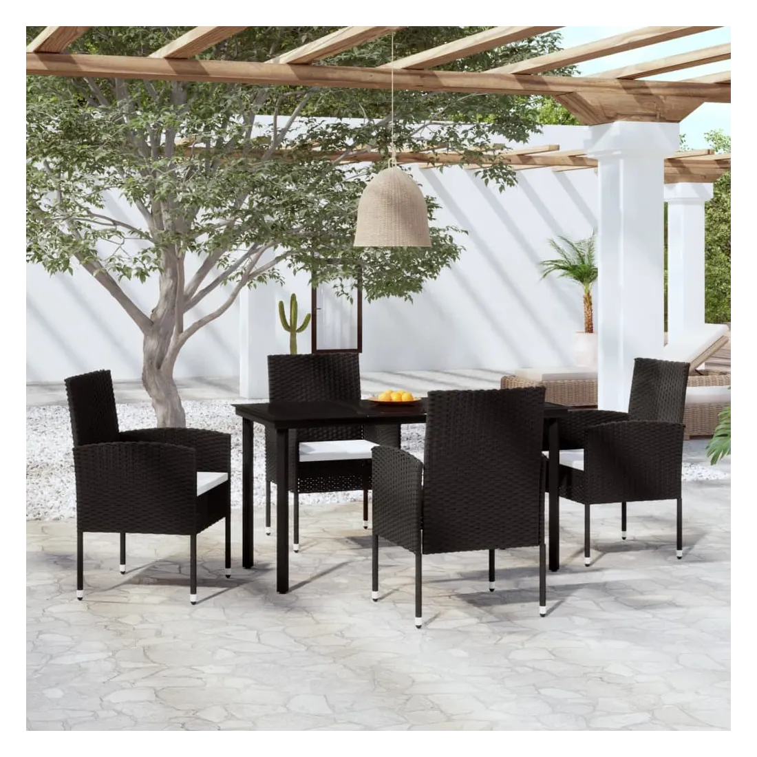 Profitez d'un bon repas ou d'un thé l'après-midi dans votre espace extérieur avec cet ensemble de salle à manger de jardin ! Ayant un design élégant, il deviendra le point central de votre jardin et de votre terrasse ! Cet ensemble de salle à manger d'extérieur pratique est doté d'un cadre en acier, ce qui le rend solide et robuste. Les chaises de jardin sont fabriquées en résine tressée résistante à l'eau et sans entretien, ce qui les rend parfaites pour une utilisation à l'extérieur. Le dessus de table en verre lisse est facile à nettoyer à l'aide d'un chiffon humide et est excellent pour placer des repas, des boissons et d'autres objets décoratifs. En outre, les coussins d'assise épais et amovibles sont très confortables. Remarque : afin de prolonger la durée de vie des meubles d'ex