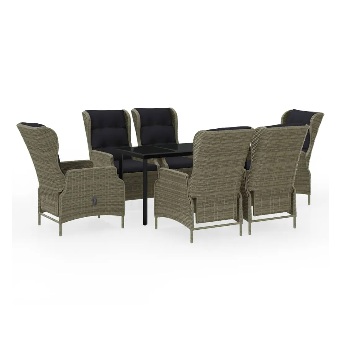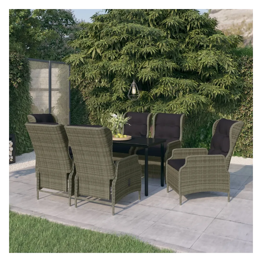Profitez d'un bon repas ou d'un thé l'après-midi dans votre espace extérieur avec cet ensemble de salle à manger de jardin ! Ayant un design élégant, il deviendra le point central de votre jardin et de votre terrasse ! Cet ensemble de salle à manger d'extérieur pratique est doté d'un cadre en acier, ce qui le rend solide et robuste. Les chaises inclinables de jardin sont fabriquées en résine tressée résistante à l'eau et sans entretien, ce qui les rend parfaites pour une utilisation en extérieur. Les coussins bien rembourrés ajoutent un confort supplémentaire à vos repas. Les housses des coussins sont équipées d'une fermeture éclair et sont amovibles et lavables. Grâce au mécanisme de levage à gaz, le dossier est également réglable pour s'adapter à vos positions. En touchant le bouton