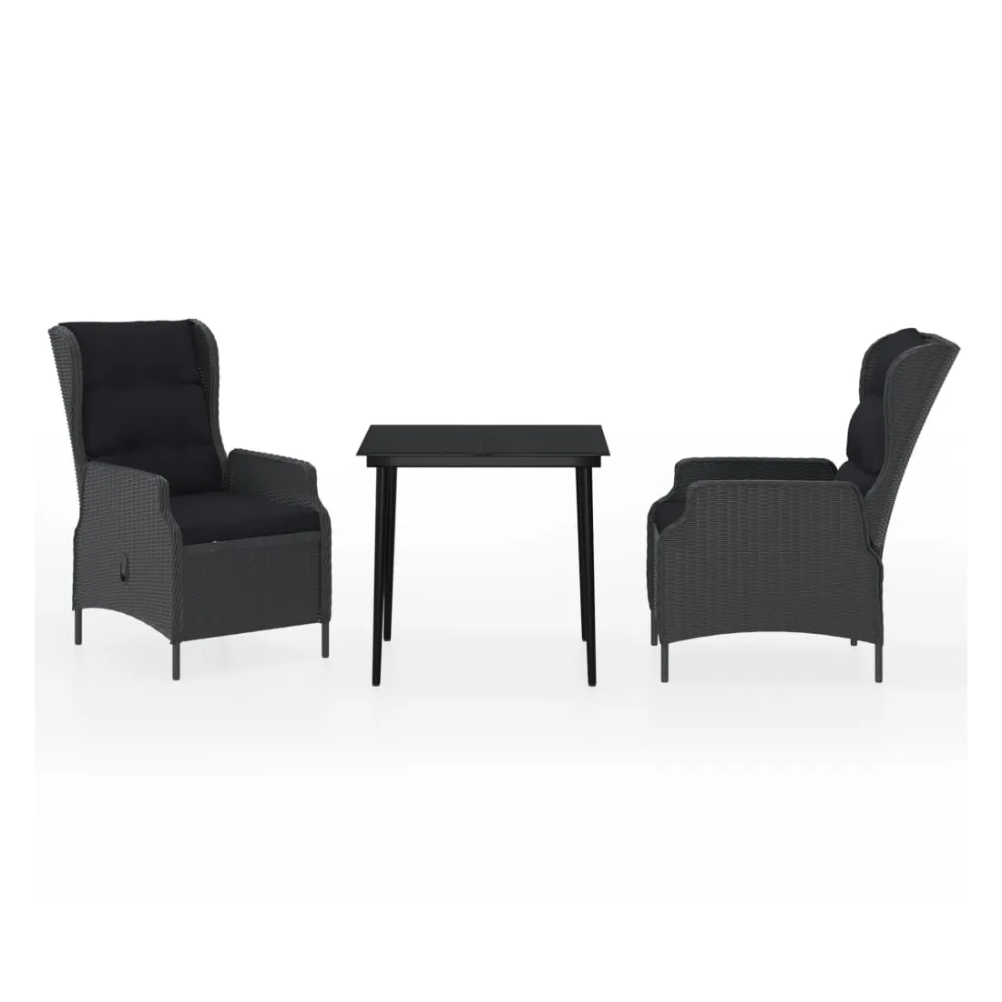 Profitez d'un bon repas ou d'un thé l'après-midi dans votre espace extérieur avec cet ensemble de salle à manger de jardin ! Ayant un design élégant, il deviendra le point central de votre jardin et de votre terrasse ! Cet ensemble de salle à manger d'extérieur pratique est doté d'un cadre en acier, ce qui le rend solide et robuste. Les chaises inclinables de jardin sont fabriquées en résine tressée résistante à l'eau et sans entretien, ce qui les rend parfaites pour une utilisation en extérieur. Les coussins bien rembourrés ajoutent un confort supplémentaire à vos repas. Les housses des coussins sont équipées d'une fermeture éclair et sont amovibles et lavables. Grâce au mécanisme de levage à gaz, le dossier est également réglable pour s'adapter à vos positions. En touchant le bouton sur le côté, le dossier peut s'incliner, pour une position confortable. En outre, le dessus de table en verre lisse est facile à nettoyer à l'aide d'un chiffon humide et est excellent pour placer des repas, des boissons et d'autres objets décoratifs. Remarque : afin de prolonger la durée de vie des meubles d'extérieur, nous vous recommandons de les protéger avec une housse imperméable.