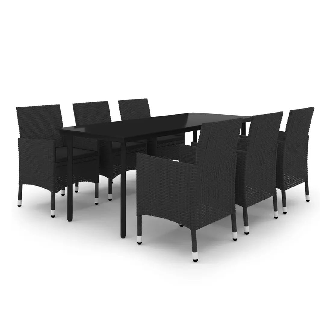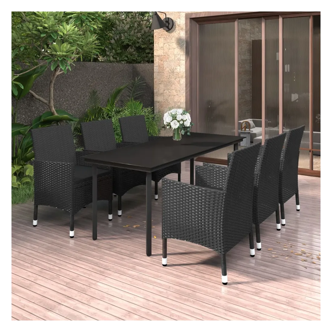 vidaXLCet ensemble élégant de salle à manger de jardin vous permet de passer des moments agréables et confortables avec votre famille et vos amis. Le cadre en acier enduit de poudre rend la table et les chaises robustes et durables. Fabriquées en résine tressée résistante aux intempéries et imperméable, les chaises sont faciles à nettoyer, résistantes à l'usure et adaptées à un usage quotidien. Le dessus de table en verre lisse est idéal pour poser des boissons, de la nourriture ou des objets décoratifs. De plus, le coussin de siège bien rembourré ajoute un confort supplémentaire aux chaises. Remarque : afin de prolonger la durée de vie des meubles d'extérieur, nous vous recommandons de les protéger avec une housse imperméable.