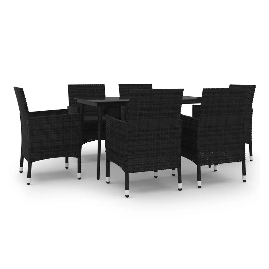Ensemble à manger de jardin coussins 7 pcs Résine tressée Verre