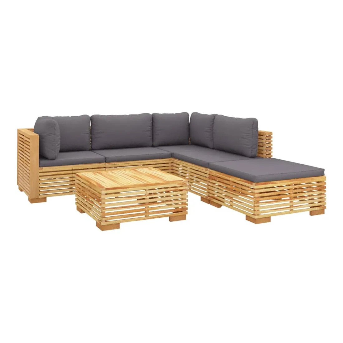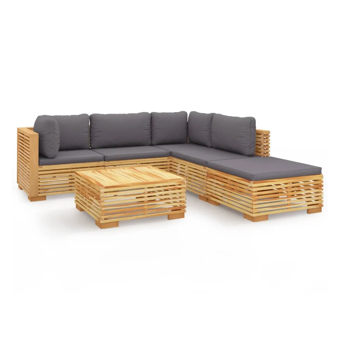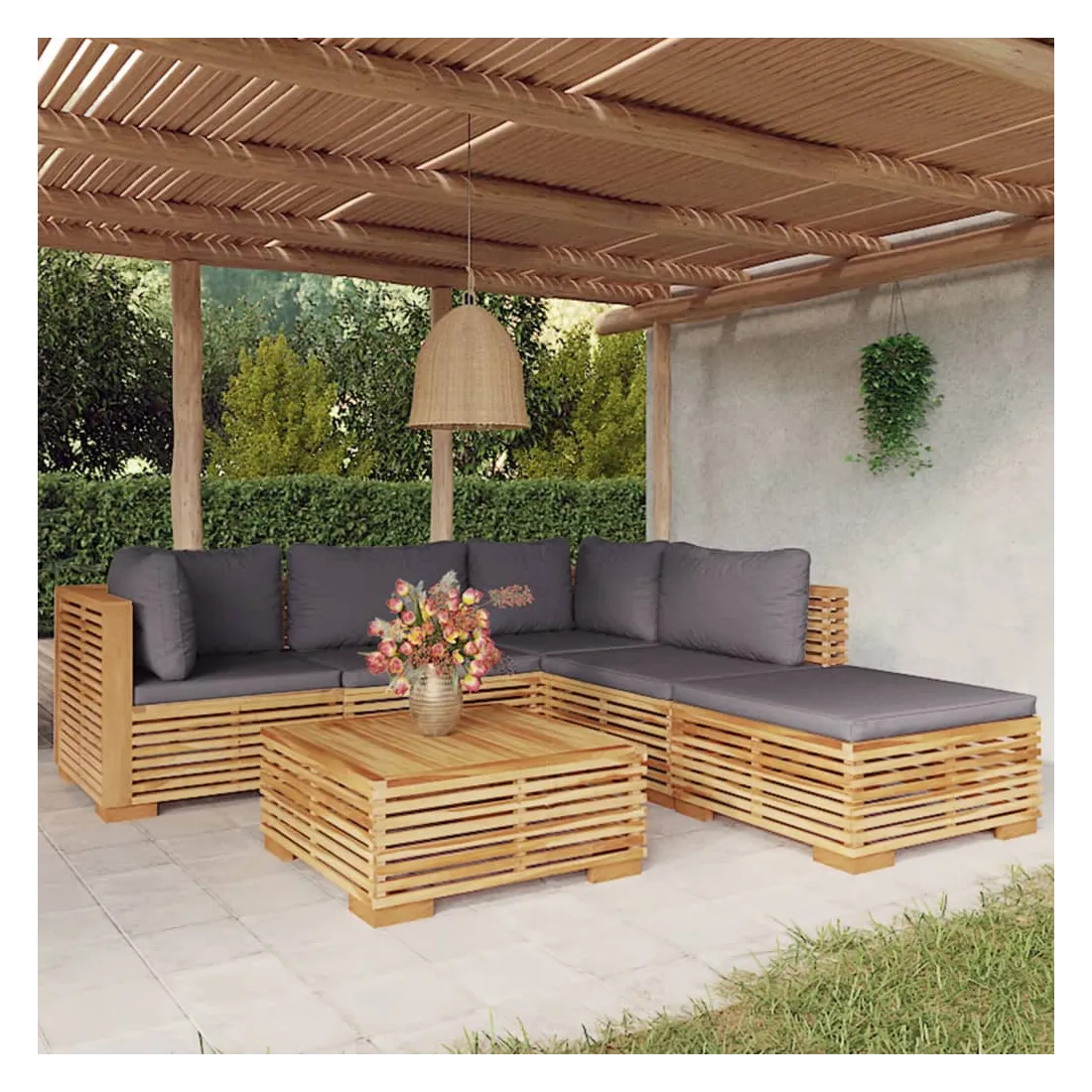 Salon de jardin 6 pcs avec coussins Bois de teck solide