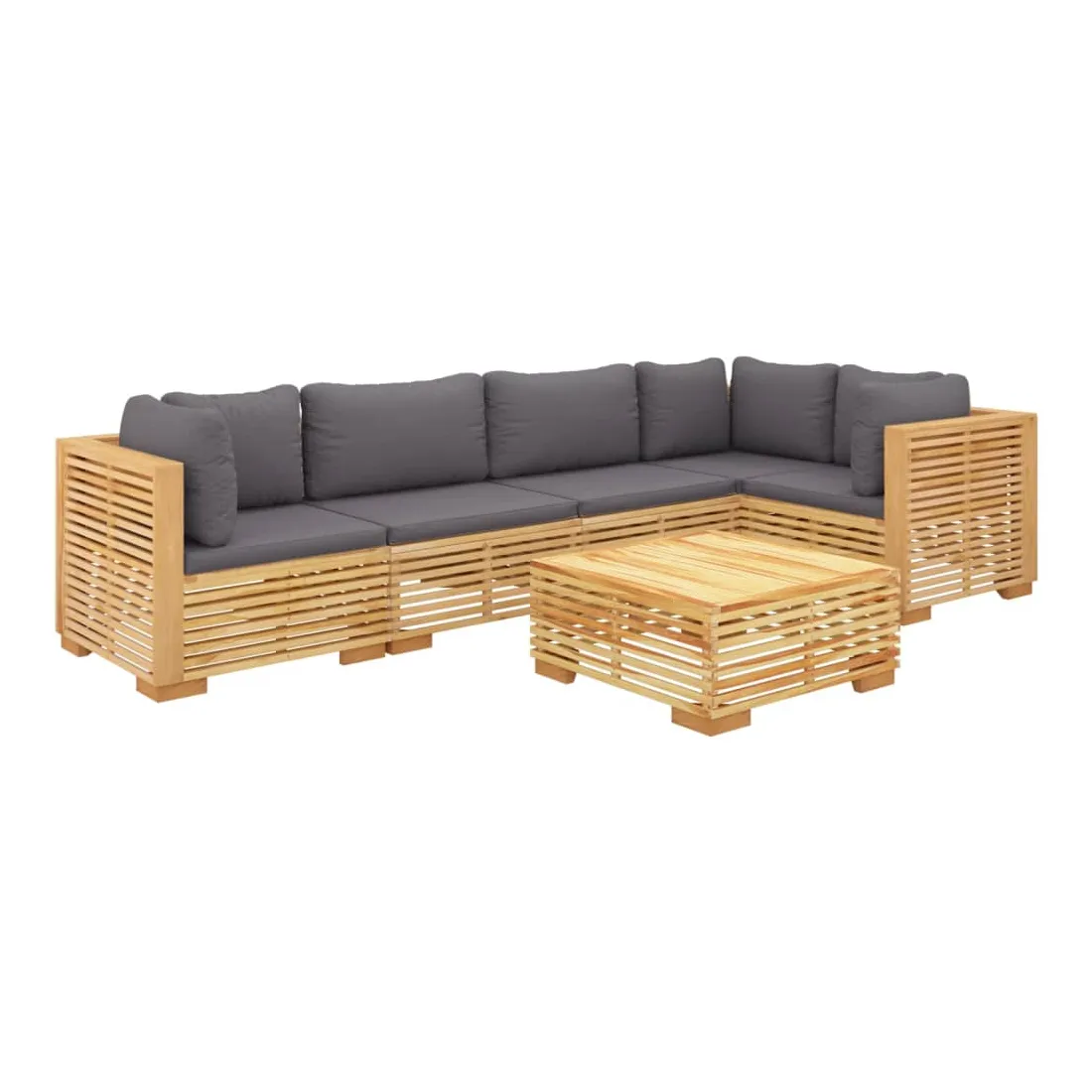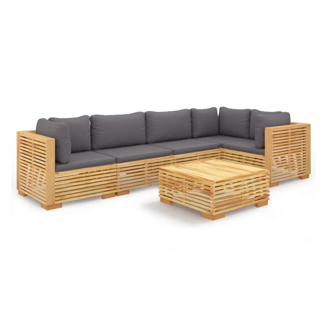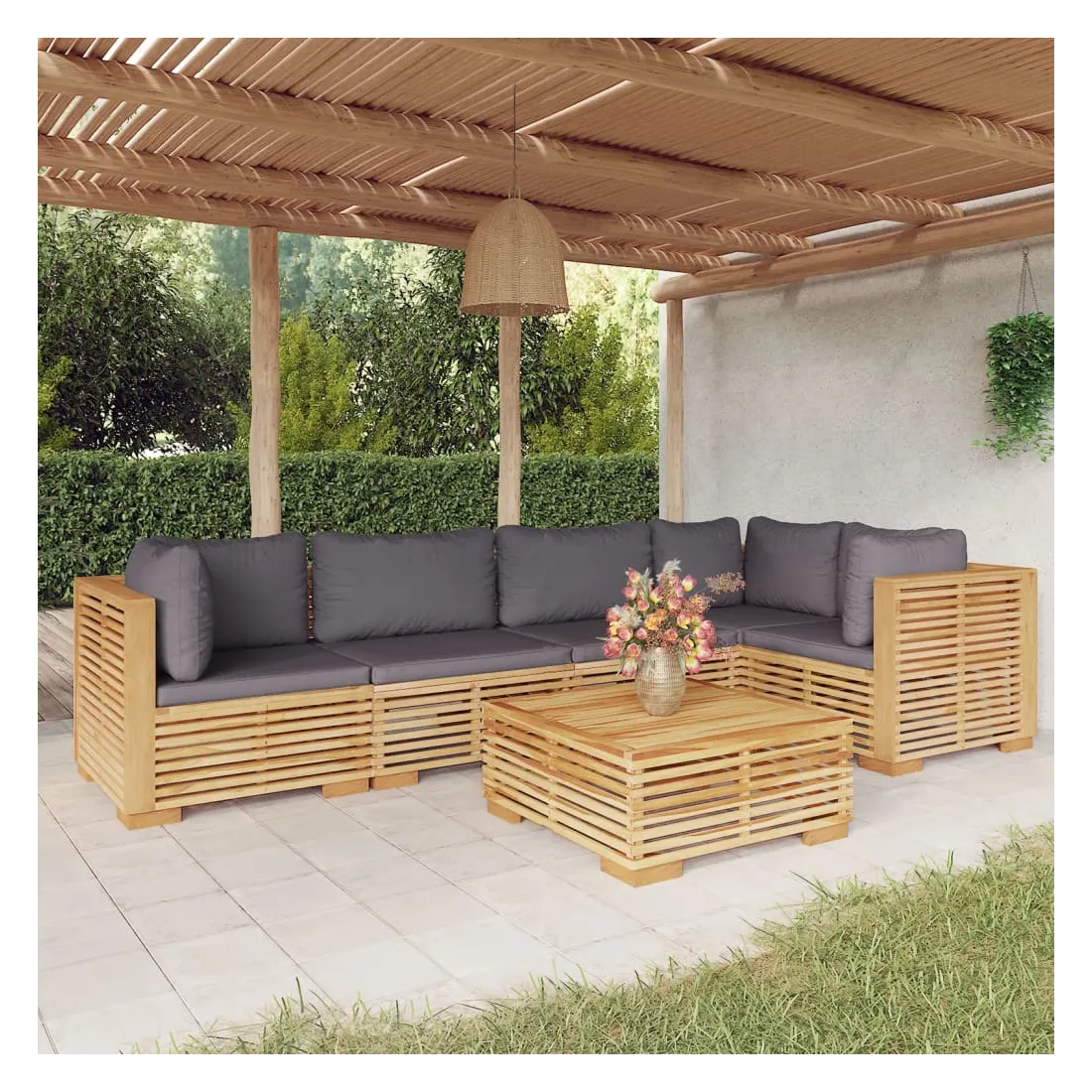Salon de jardin 6 pcs avec coussins Bois de teck solide