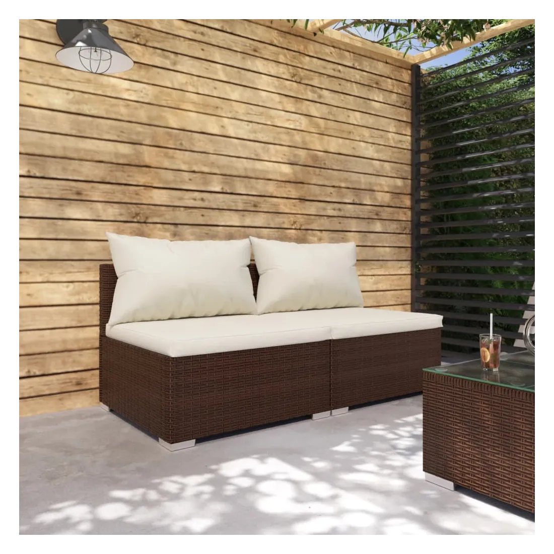 Salon de jardin 2 pcs avec coussins Résine tressée Marron